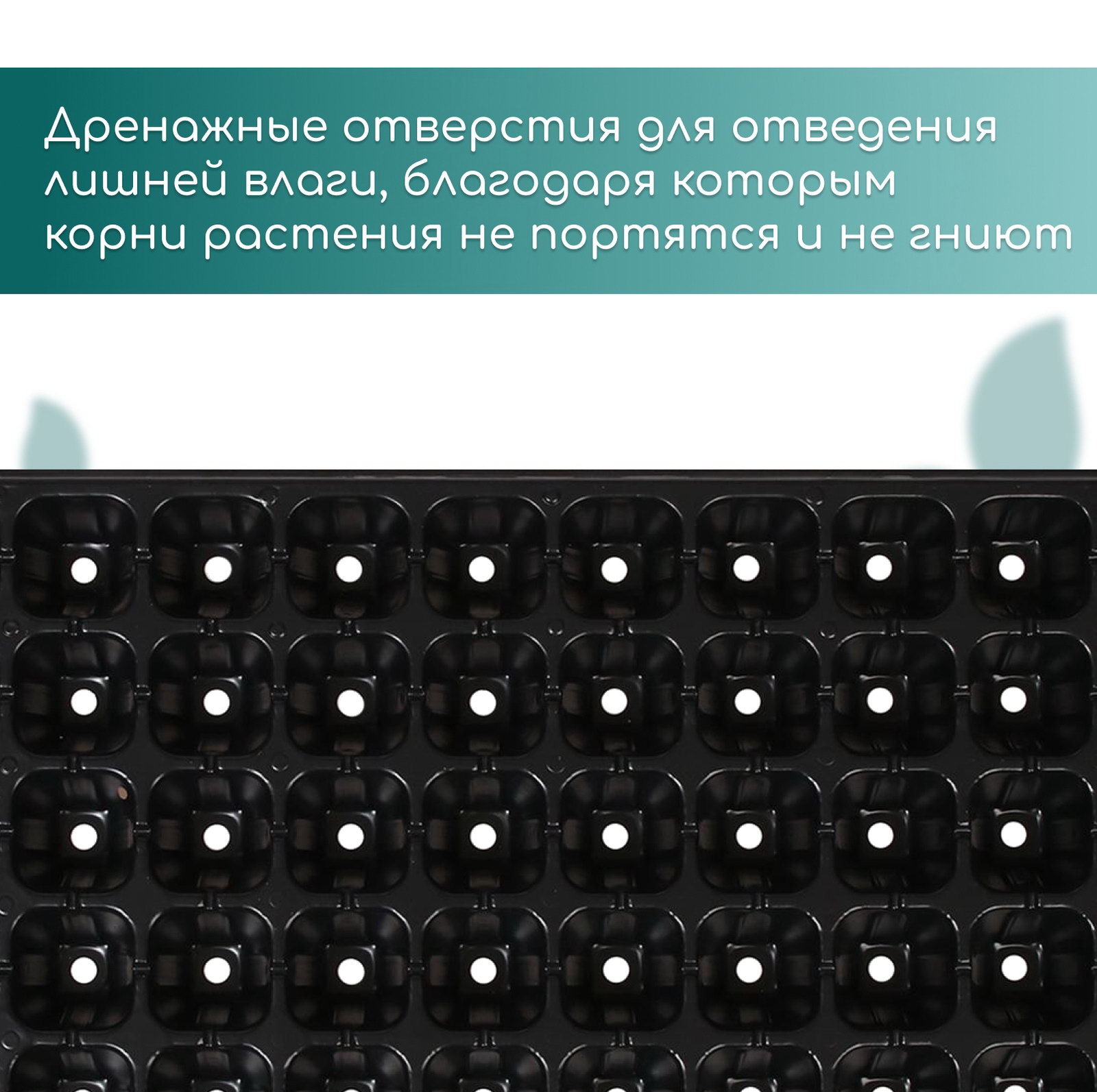 Кассета для рассады, 50 ячеек по 75 мл, пластик, чёрная, 56x29.5x4 см, 28x54x3.5 см., Greengo, Китай