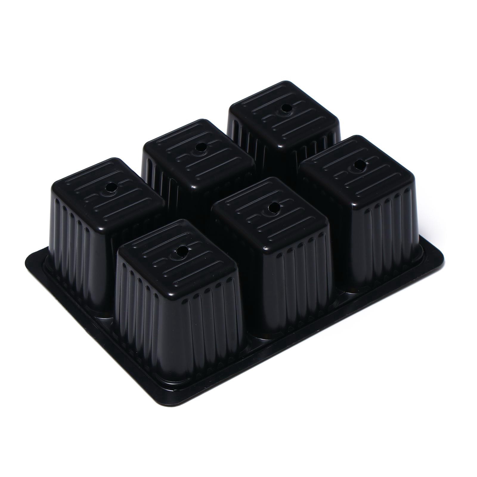 Кассета для рассады, 6 ячеек по 120 мл, пластик, чёрная, 18x13x6 см, набор 10 шт., 13x18x6 см., Greengo, Россия