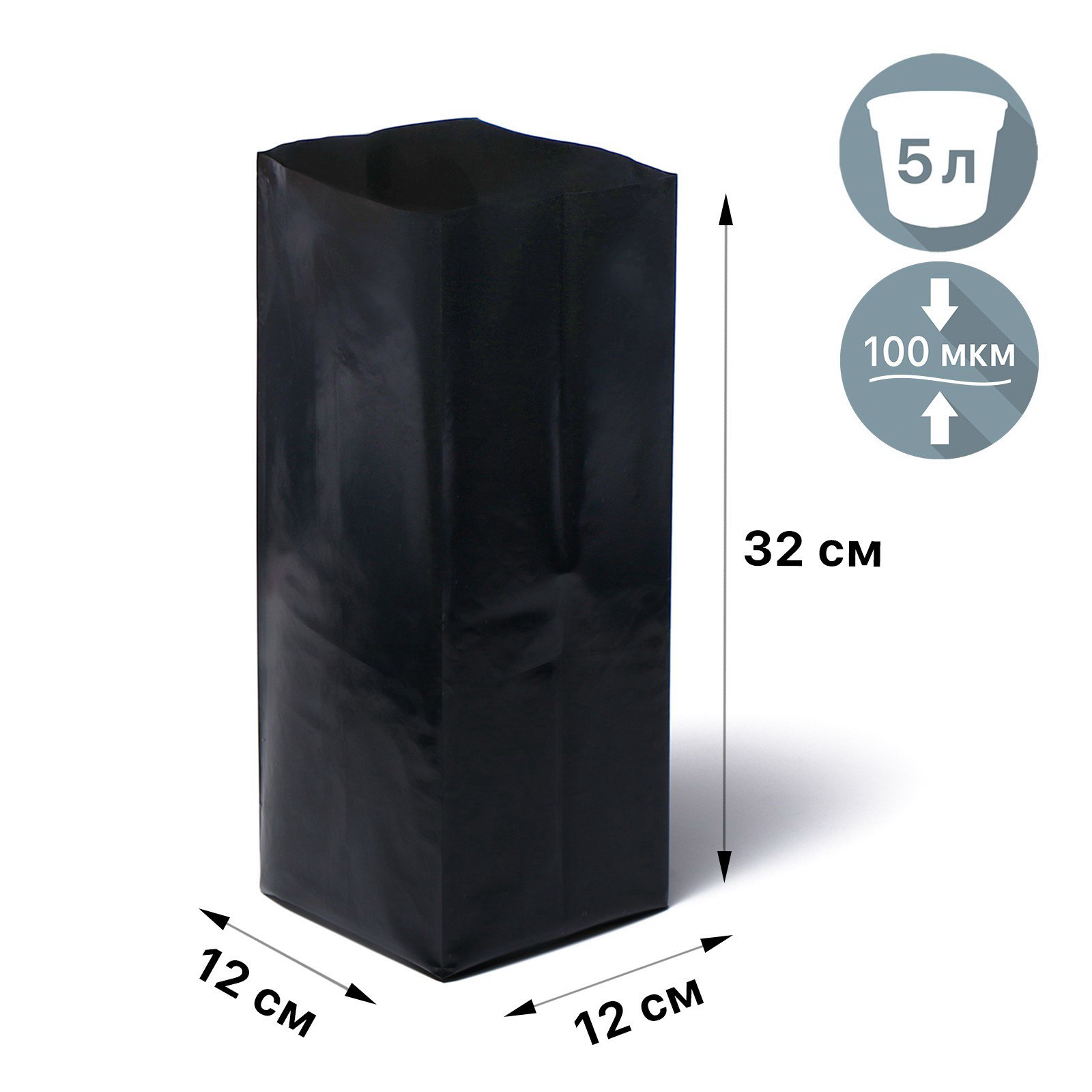 Пакет для рассады, 5 л, 12x35 см, полиэтилен, толщина 100 мкм, с перфорацией, чёрный, 5000 мл., Greengo, Россия