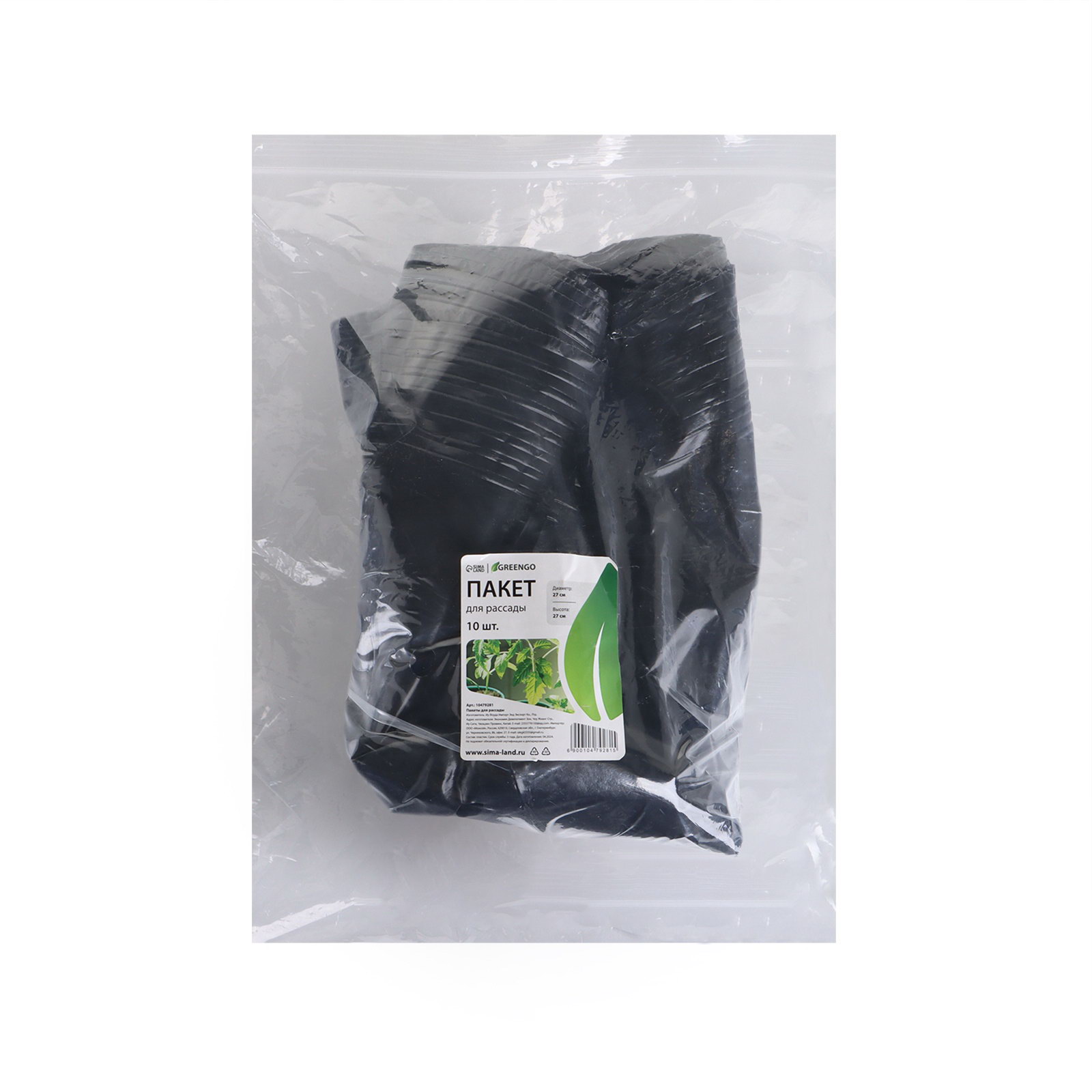 Пакет для рассады, 10 л, d = 25 см, h = 26 см, полиэтилен, чёрный, 28x28x27 см., Greengo, Китай