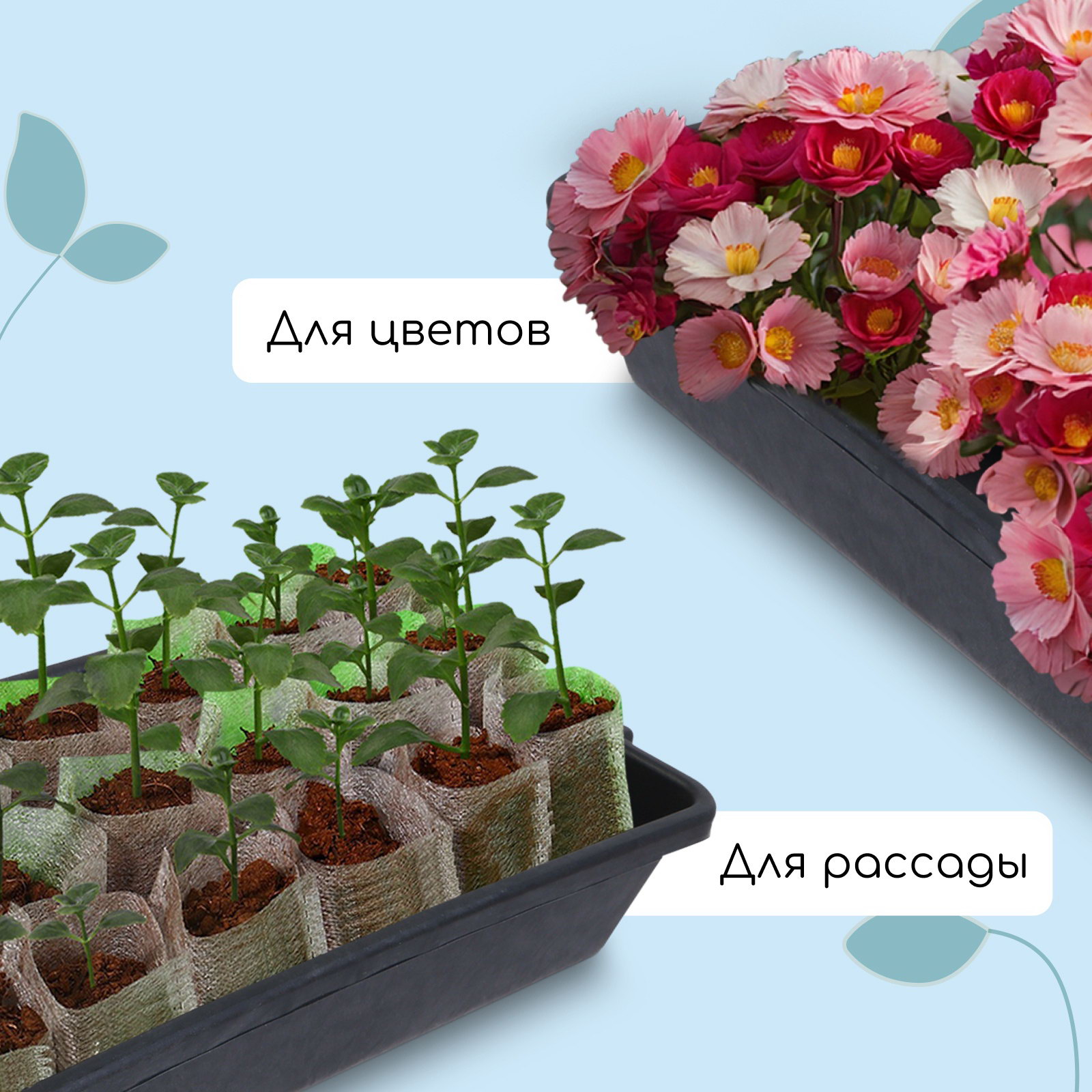 Ящик пригодится, чтобы разместить на нём рассаду. Это обеспечит чистый и аккуратный вид рабочей поверхности, где выращивается рассада. Из-за своей прочности подойдут для переноса и транспортировки рассадников