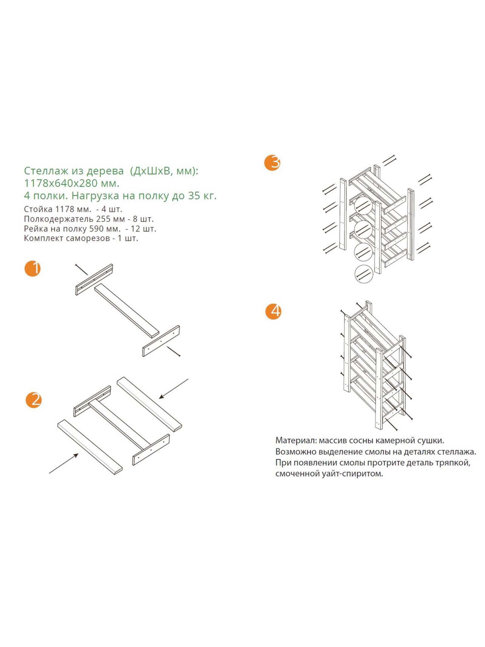 Стеллаж деревянный "Альфа 117", 4 полки, 117.8x64x28 см, хвоя, напольный, Добропаровъ, Россия