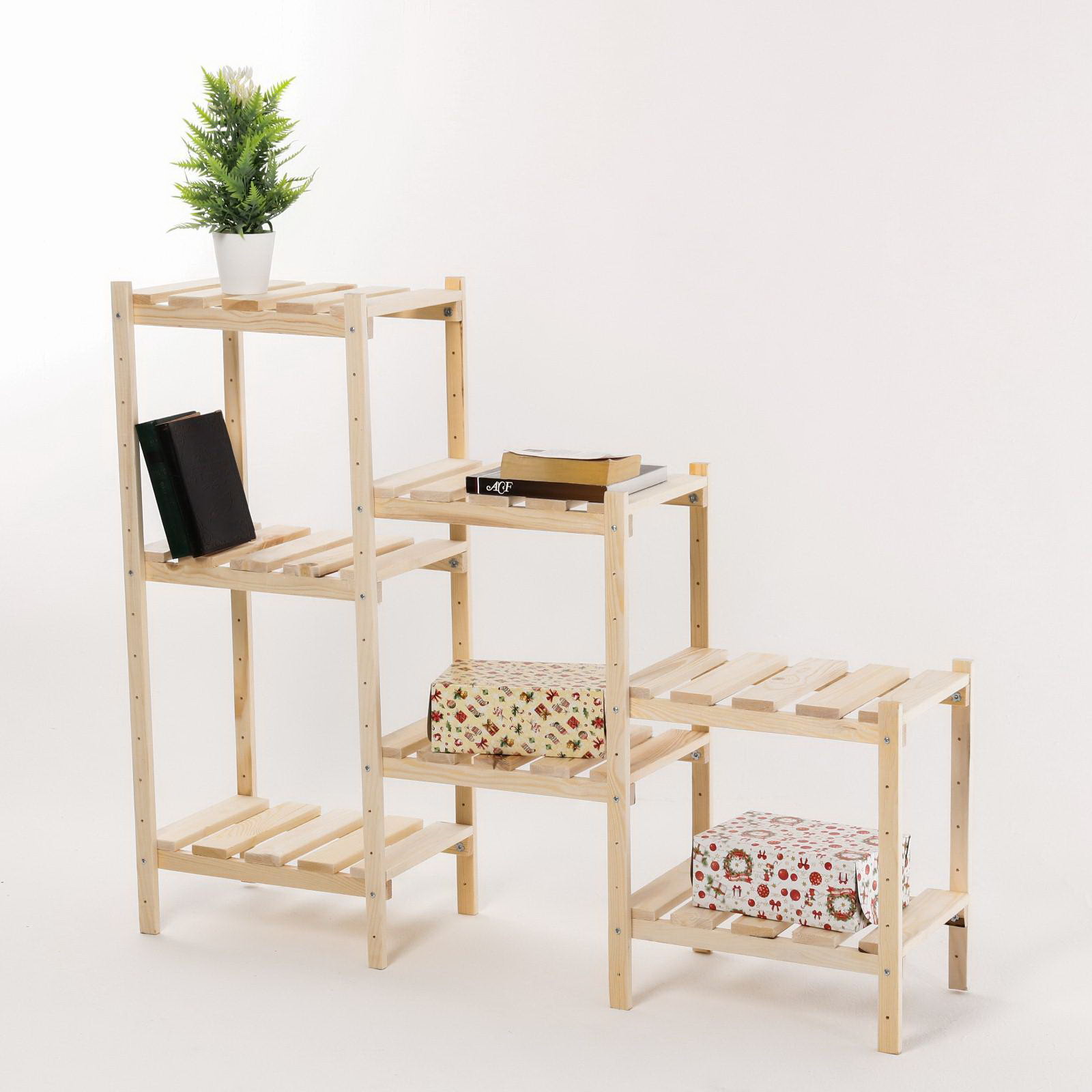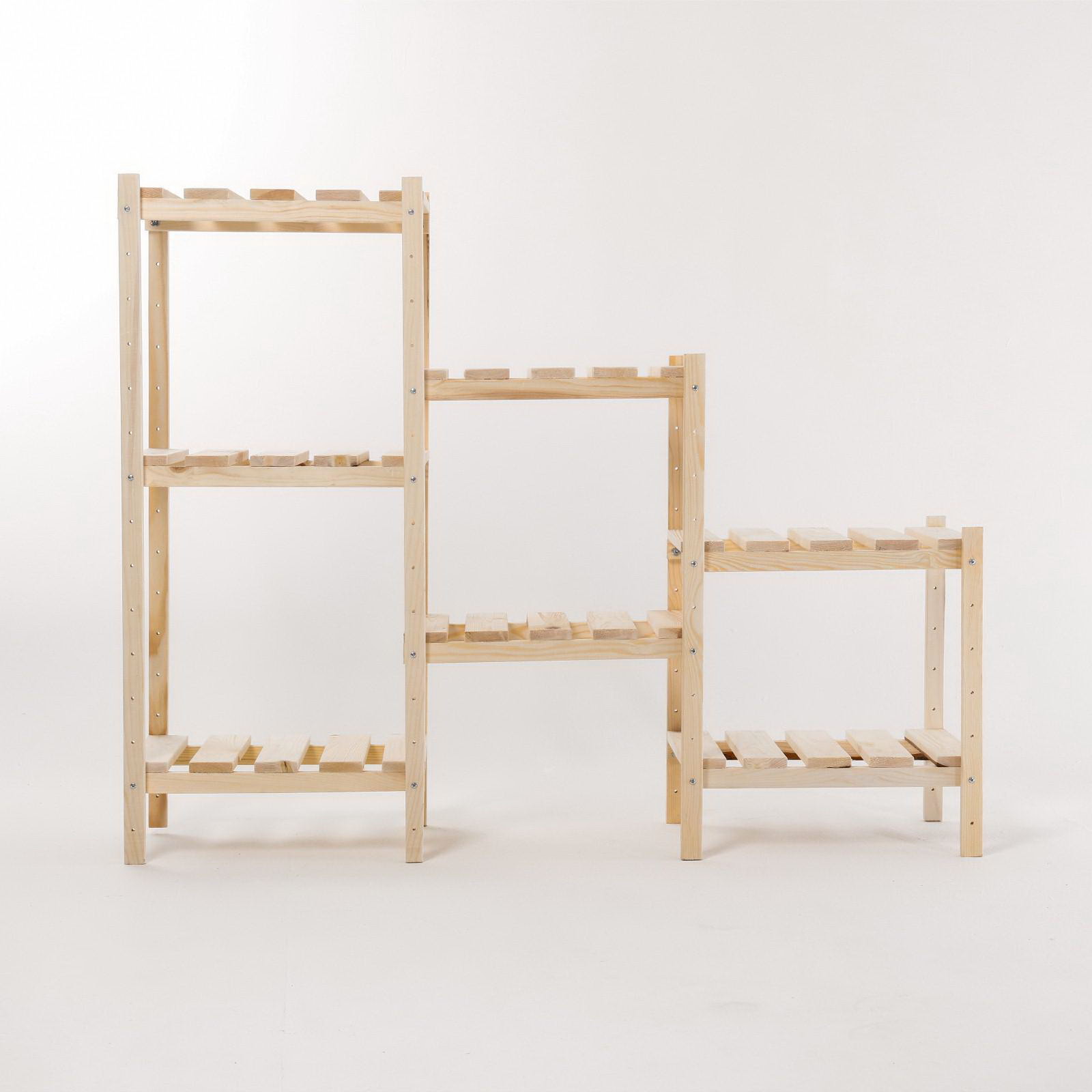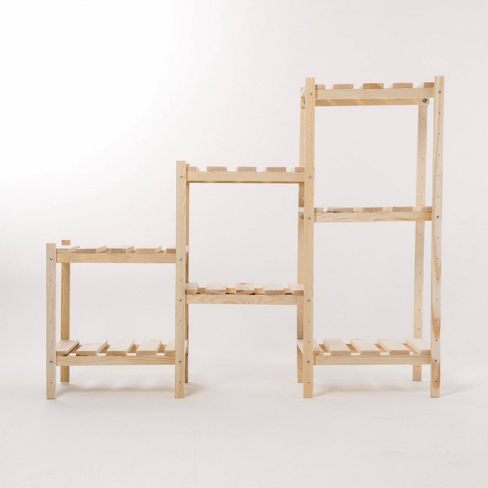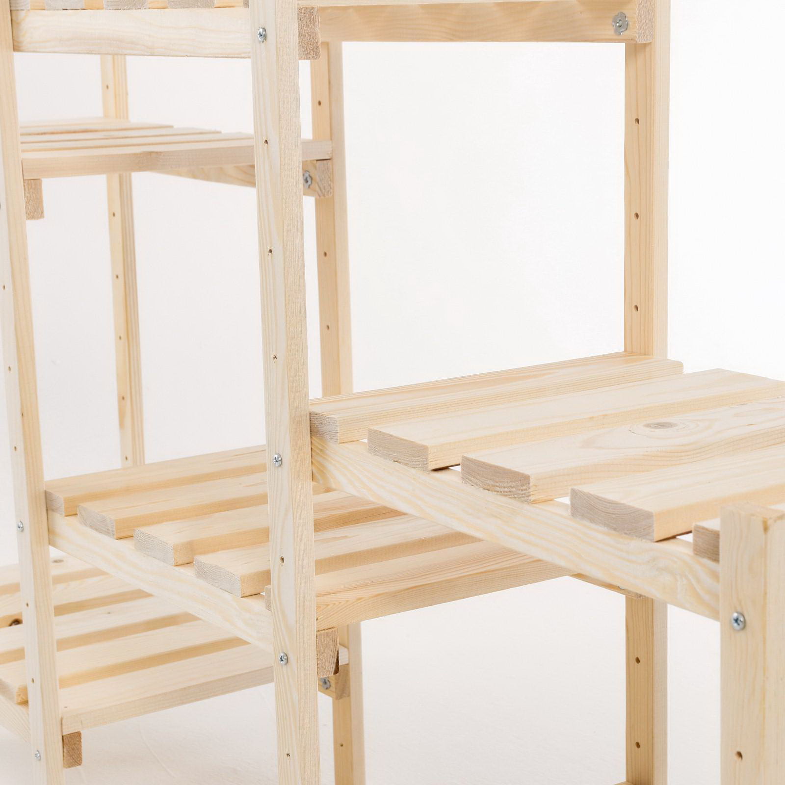 Стеллаж деревянный, 7 полок, 122x31x99.6 см, хвоя, регулируемый, напольный, Россия