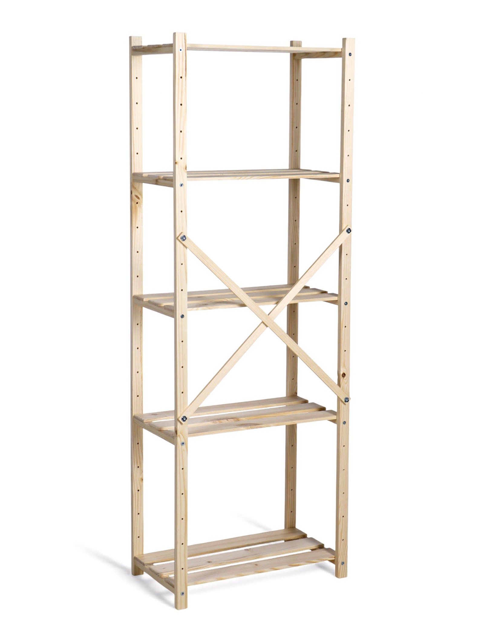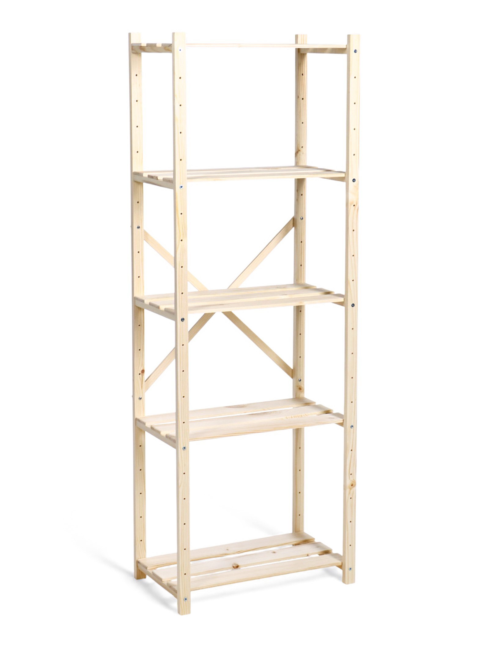 Стеллаж деревянный, 5 полок 142x50x28 см, напольный, с регулируемыми полками, Россия