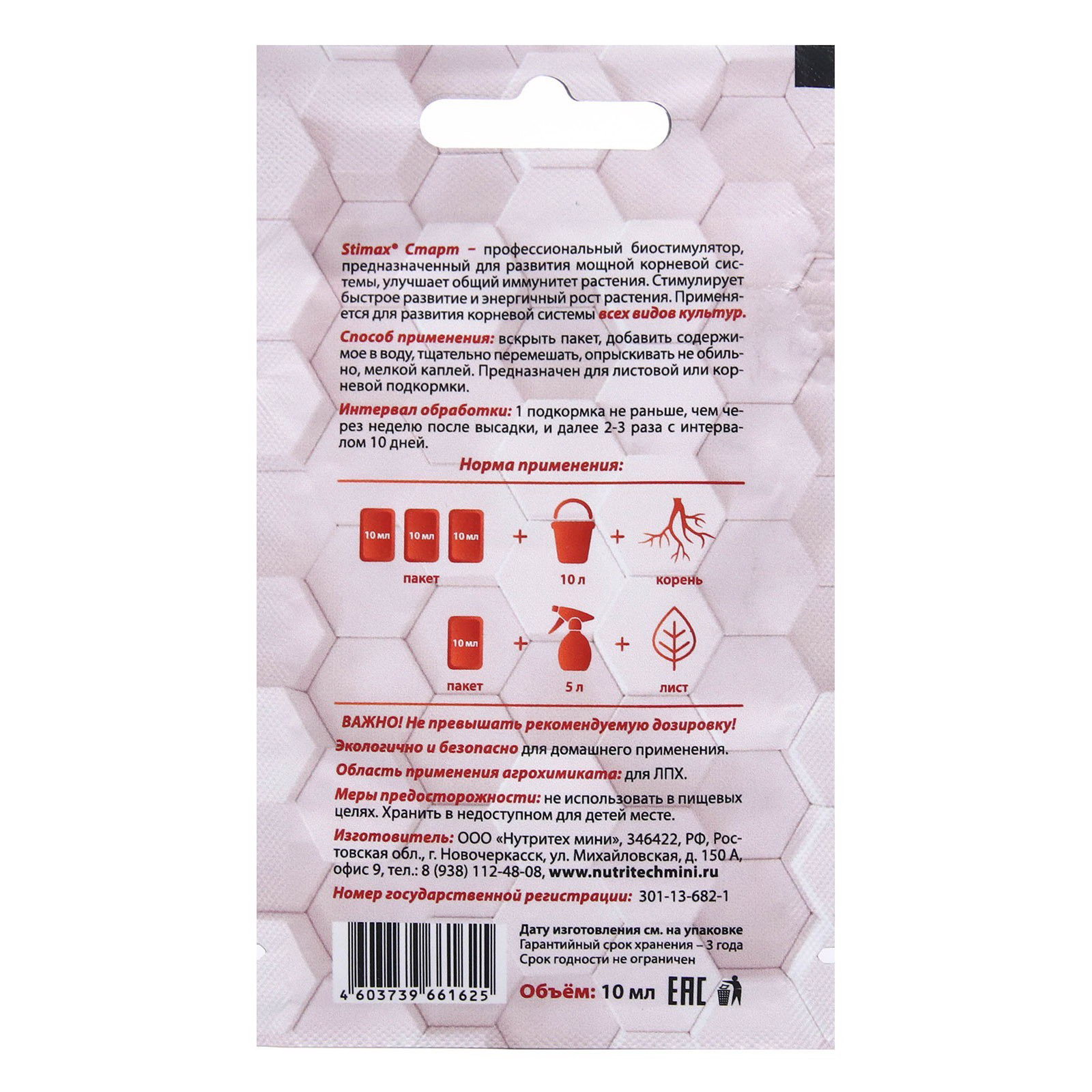 Размер упаковки: 7 x 0.1 x 12 см. Происхождение: Минеральные (неорганические) Класс опасности: 3 класс (умеренно опасные) Эффект: Увеличение урожая Группы элементов: Макроудобрения Периоды применения: Круглогодичные Вид: Удобрения Комплексные удобрения: Нет Запрет реализации по сегментам: 00000000594 tnved: 3102500000 tnved: 3102500000 Сатурн: Да Температурное ограничение: Нет Вид средства: Стимулятор роста Препаративная форма: Порошок Область применения: Универсальные Профессиональный стимулятор корнеообразования. Stimax Старт особый вид биостимулятора. Содержит природные фитогормоны. Изготовлен из натуральных компонентов. Содействует развитию мощной корневой системы растения. Активирует быстрый рост и энергичное развитие растения. Способствует улучшению качества и количества урожая. Применение и дозировка: применяется для развития корневой системы всех видов культур. Предназначен для листовой и корневой подкормки. Способ применения: вскрыть пакет, добавить содержимое в воду, тщательно перемешать, опрыскивать не обильно, мелкой каплей. Интервал обработки:1 подкормка не раньше, чем через неделю после высадки, и далее 2-3 раза с интервалом 10 дней. Норма применения: 30 мл на 10 л - корневая, 10 мл на 5 л - листовая подкормка. Не превышать рекомендуемую дозировку! Гарантийный срок хранения: 3 года. Срок годности не ограничен. Массовая доля питательных веществ: экстракт водорослей "Ascophyllum nodosum" 12%, общий азот(N) 1,2%, органический азот(N) 0,2%, мочевинный азот(N) 1%, марганец(Mn), хелат EDTA 0,5%, цинк(Zn), хелат EDTA 0,5%, железо(Fe), хелат DTРA 1%, рН (1% раствора) 6. | ||