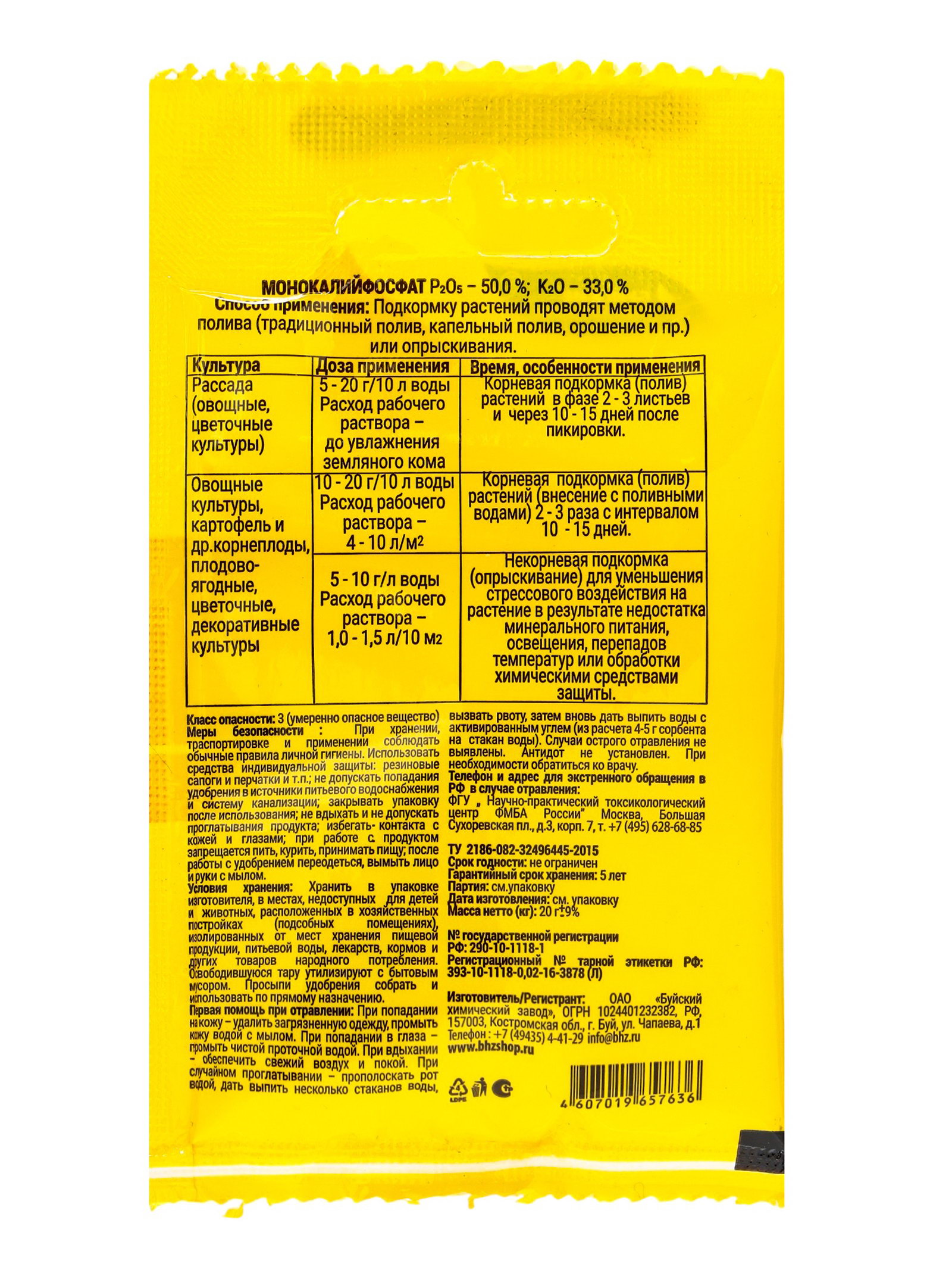Удобрение минеральное Монокалийфосфат, 20 г, Буйские удобрения, Россия