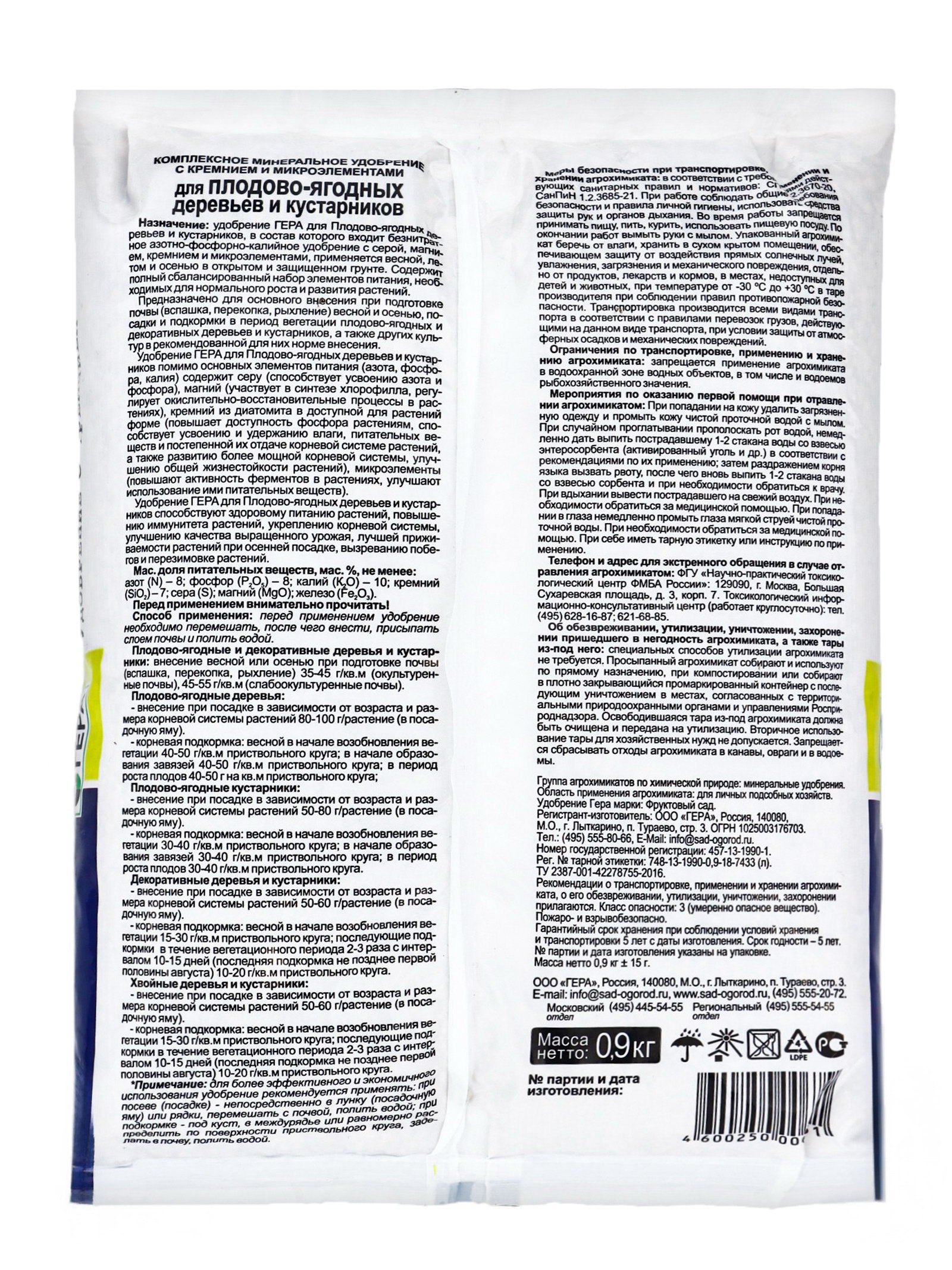 Удобрение для Плодовых и ягодных культур с диатомитом, 0.9 кг, ГЕРА, Россия