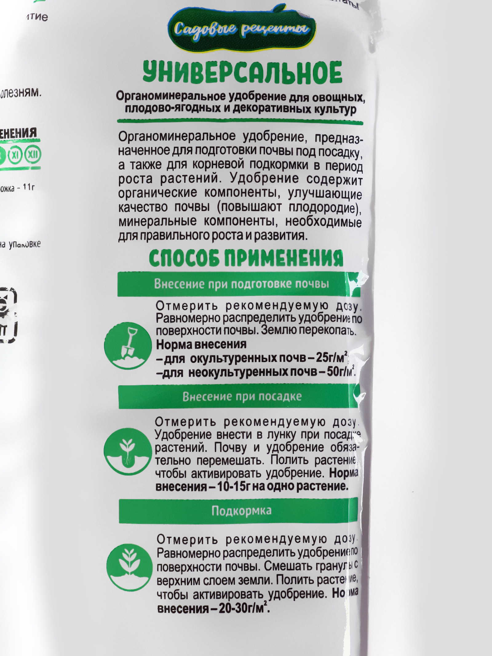 Органоминеральное удобрение Универсальное, Садовые рецепты, 1 кг, Зеленое сечение, Россия