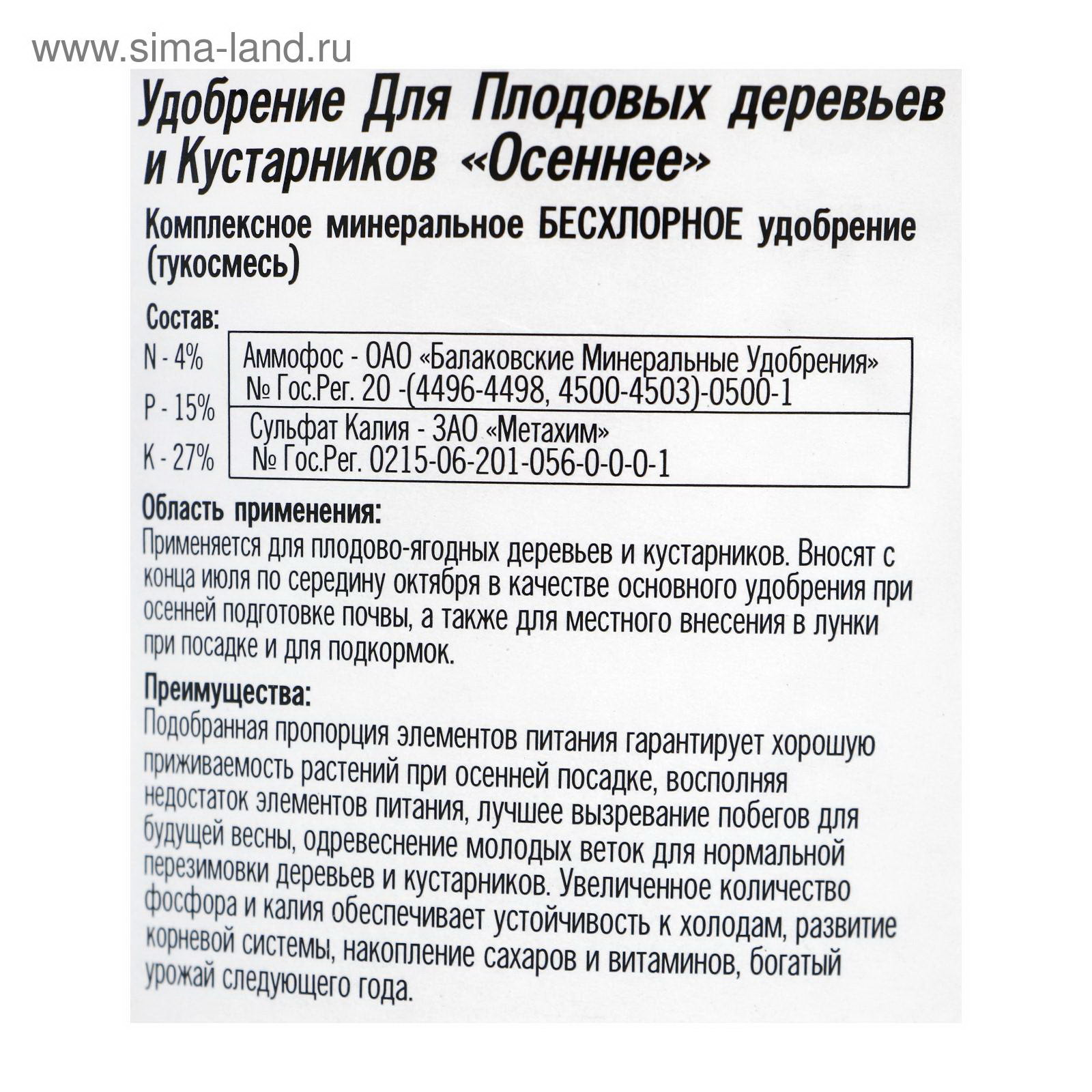 Удобрение Для Плод. деревьев и куст. ОСЕНЬ 1 кг, Поспелов, Россия