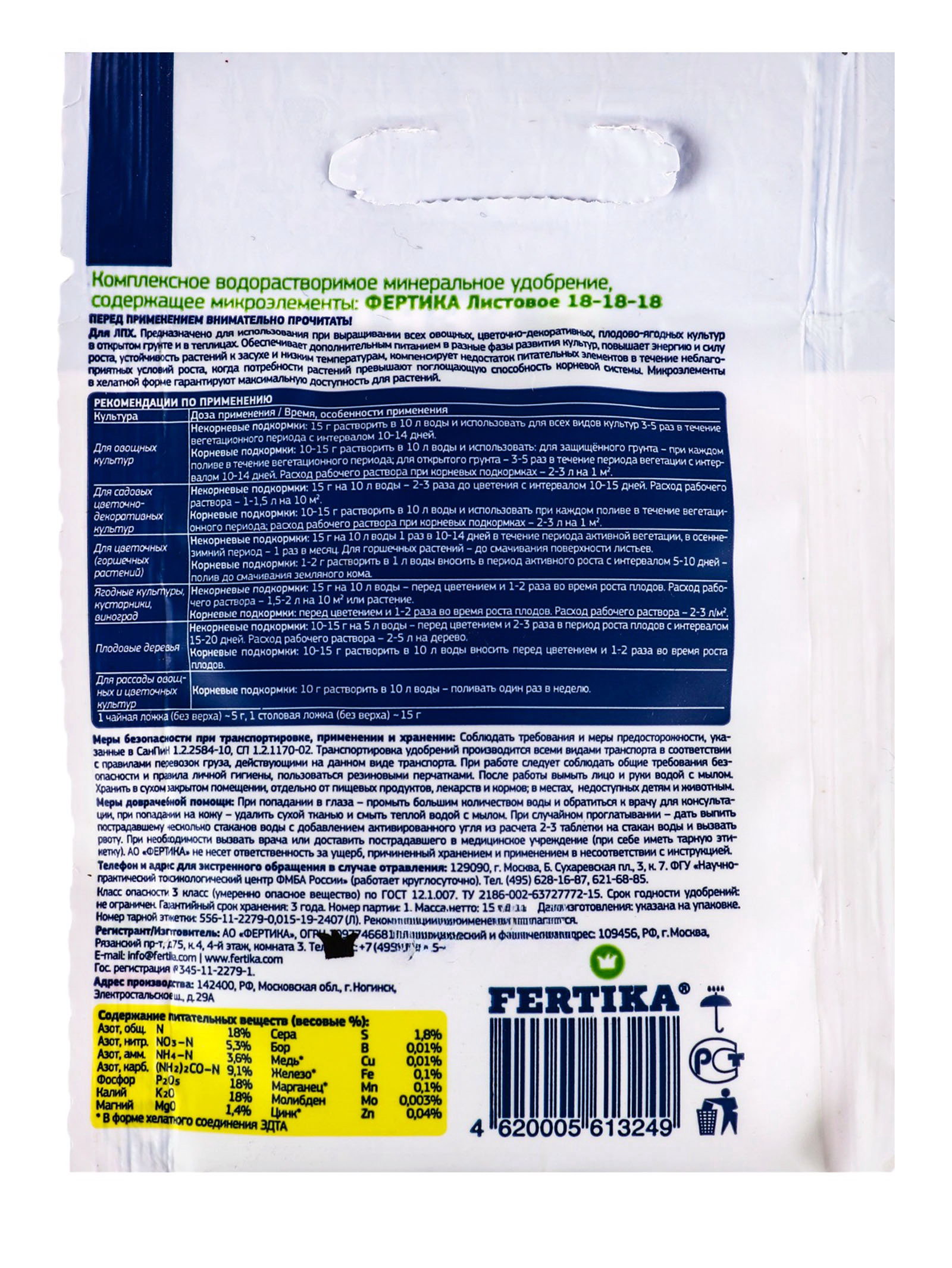Удобрение минеральное Фертика Leaf Power универсальное, 15 г, FERTIKA, Россия