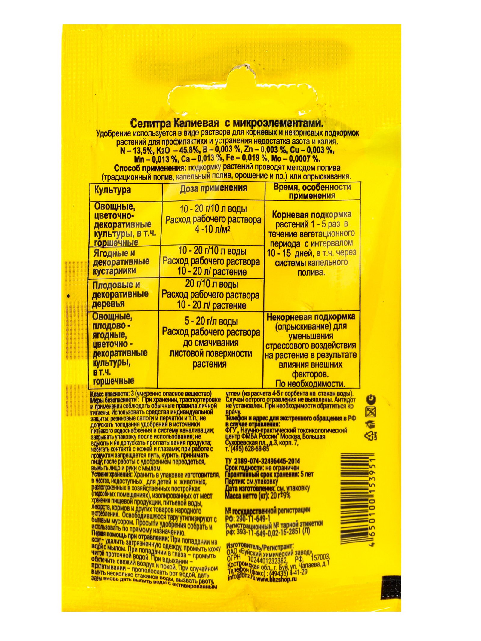 Удобрение минеральное Селитра калиевая с микроэлементами 20 г, Буйские удобрения, Россия