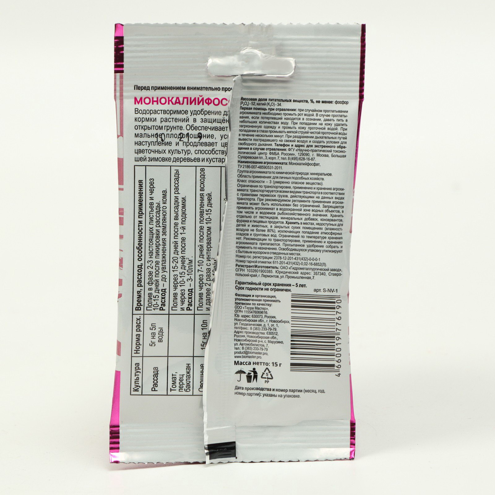 Удобрение минеральное Монокалийфосфат, 15 г, БиоМастер, Россия