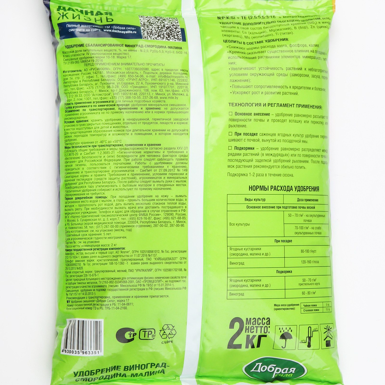 Сухое удобрение Добрая сила, для Винограда, Смородины, Малины, 2 кг, Россия