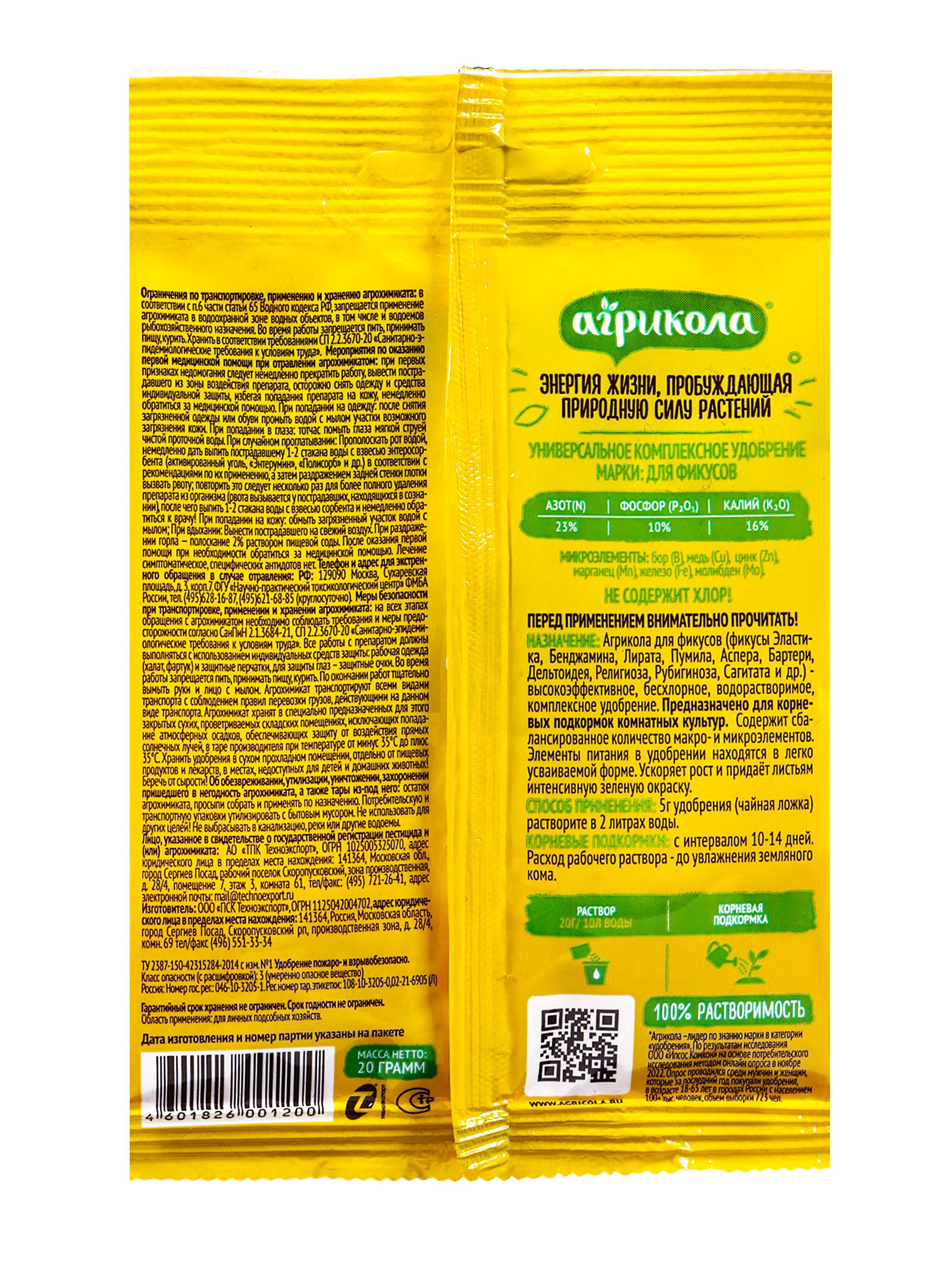 Удобрение Агрикола для фикусов, 20 г, ГРИН БЭЛТ, Россия