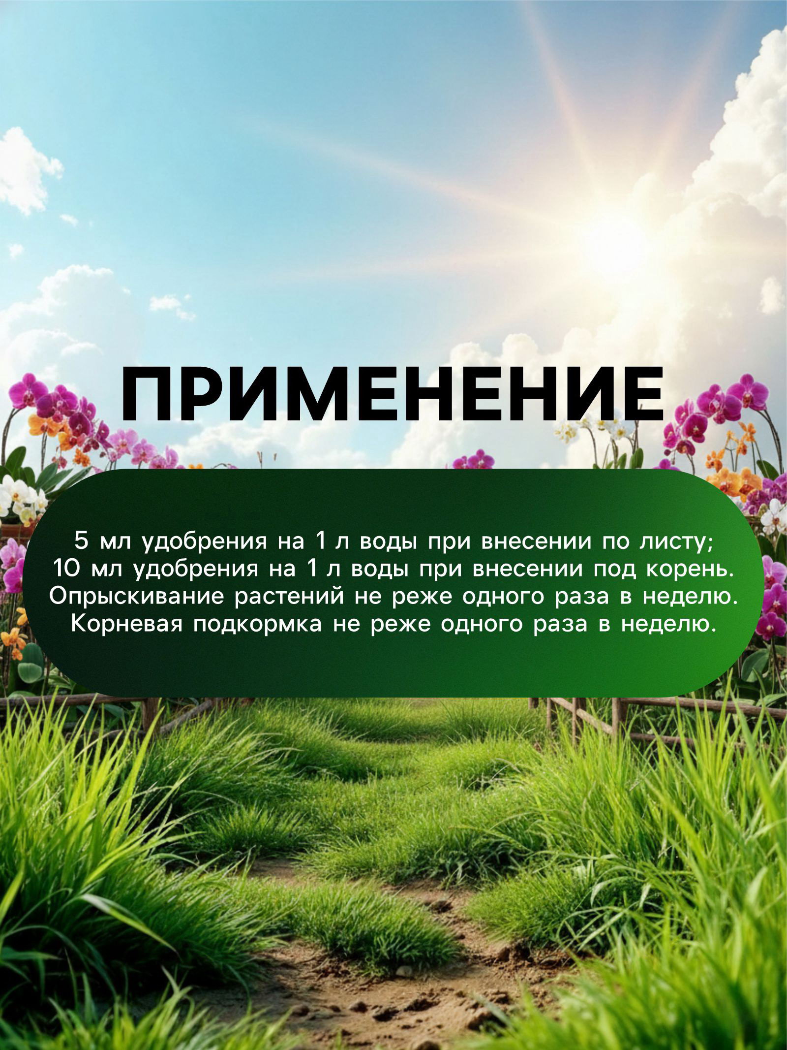 ""Способ применения"":Перед применением удобрения "Green Life" необходимо встряхнуть бутылку с удобрением. Затем с помощью дозатора нанести удобрение на почву вокруг корней орхидей. Рекомендуемая частота применения - 1 раз в 2 недели в период активного роста орхидей. Органическое удобрение "Green Life" для орхидей является незаменимым помощником в уходе за этими изысканными растениями, обеспечивая им все необходимые питательные вещества для здорового и красивого развития. | ||