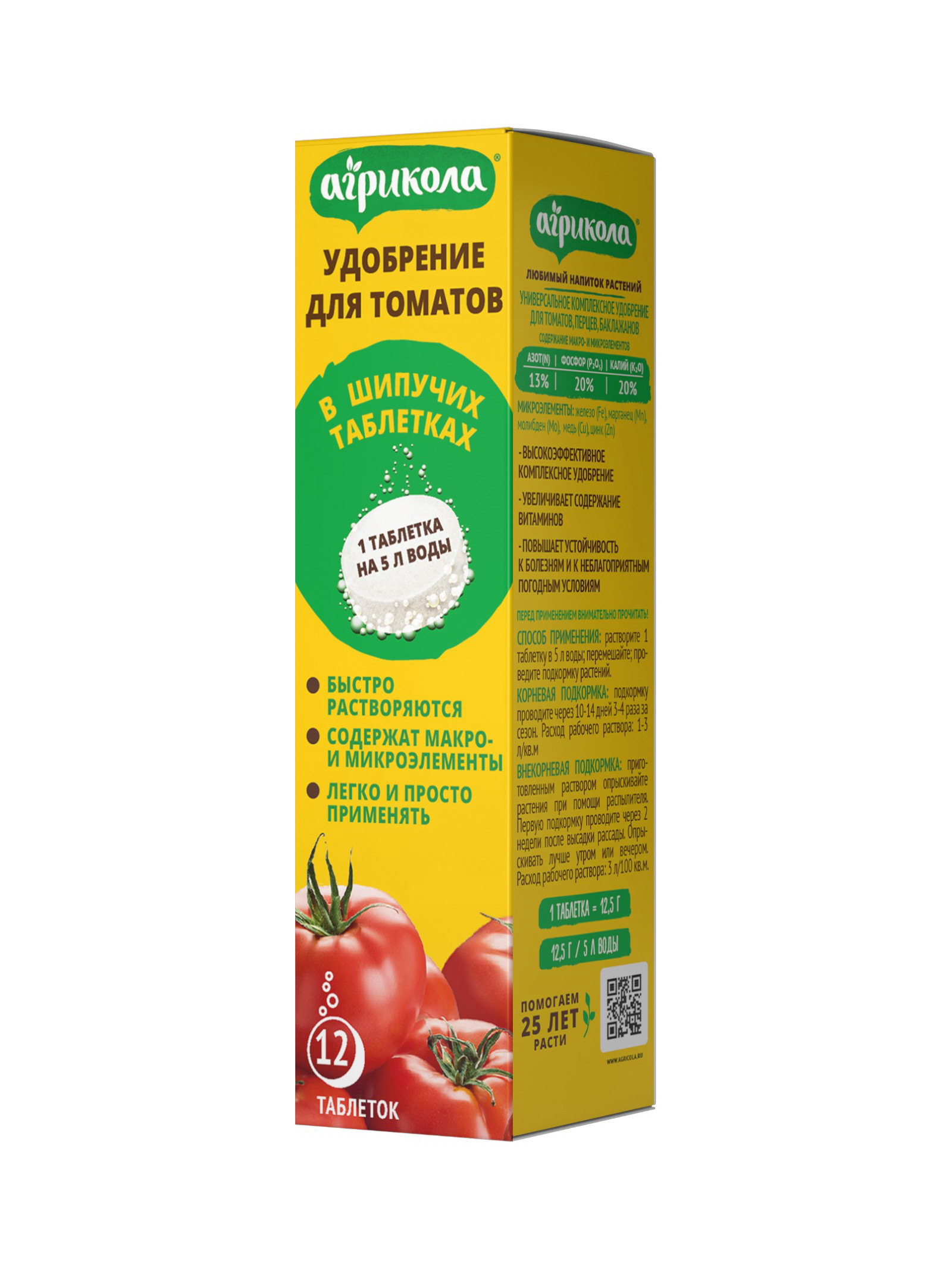 Периоды применения: Весна, Лето Размер упаковки: 3.5 x 3.5 x 13 см. tnved: 3105201000 Температурное ограничение: Нет Сатурн: Да Область применения: Для овощей Комплексные удобрения: Да Эффект: Увеличение урожая Препаративная форма: Таблетки Происхождение: Минеральные (неорганические) "Агрикола" для томатов шипучие таблетки с составом, разработанным для помидоров, перцев и баклажанов. Удобрение усиливает образование завязей и улучшает вкусовые качества плодов.