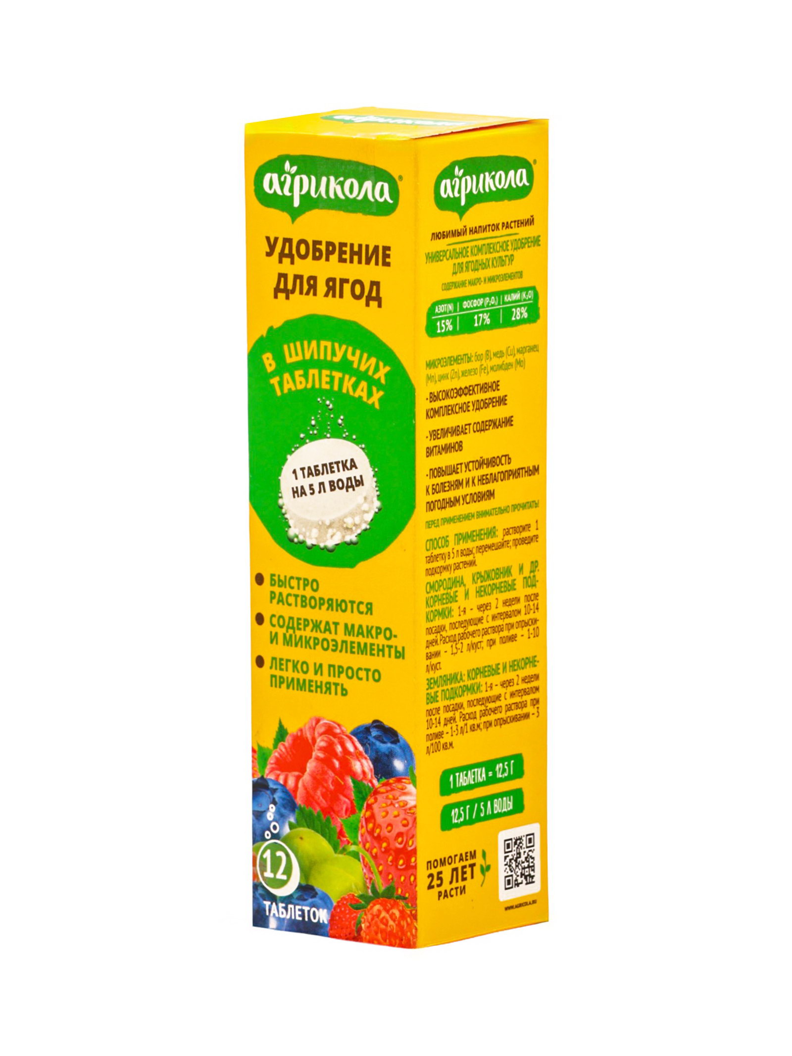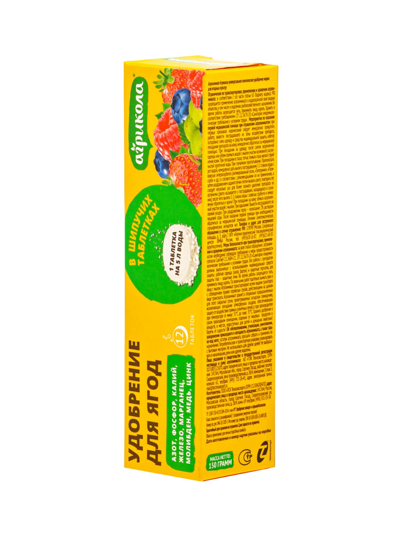 Удобрение для ягод в шипучих таблетках, 12 штук, 150 г, ГРИН БЭЛТ, Россия