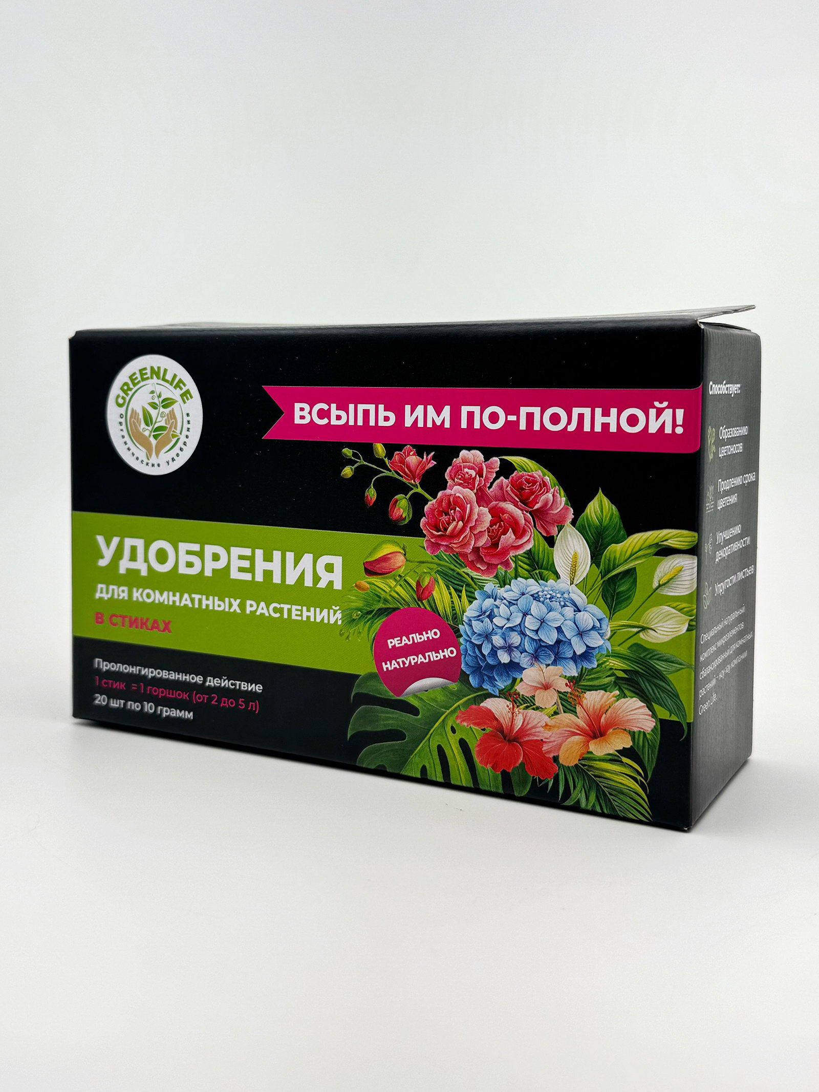 Удобрение в стиках для комнатных растений коробка, 20 шт., Greenlife, Россия