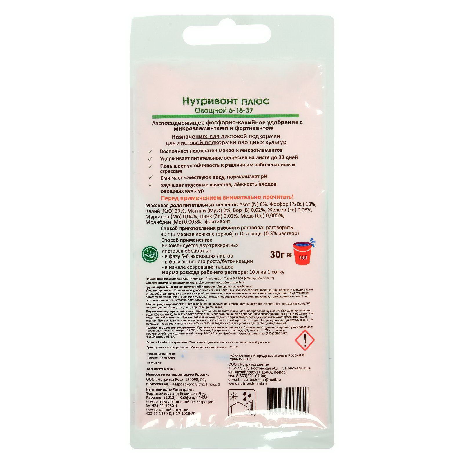 Удобрение Плюс Овощной 6-18-37, 30 г, Нутривант, Израиль