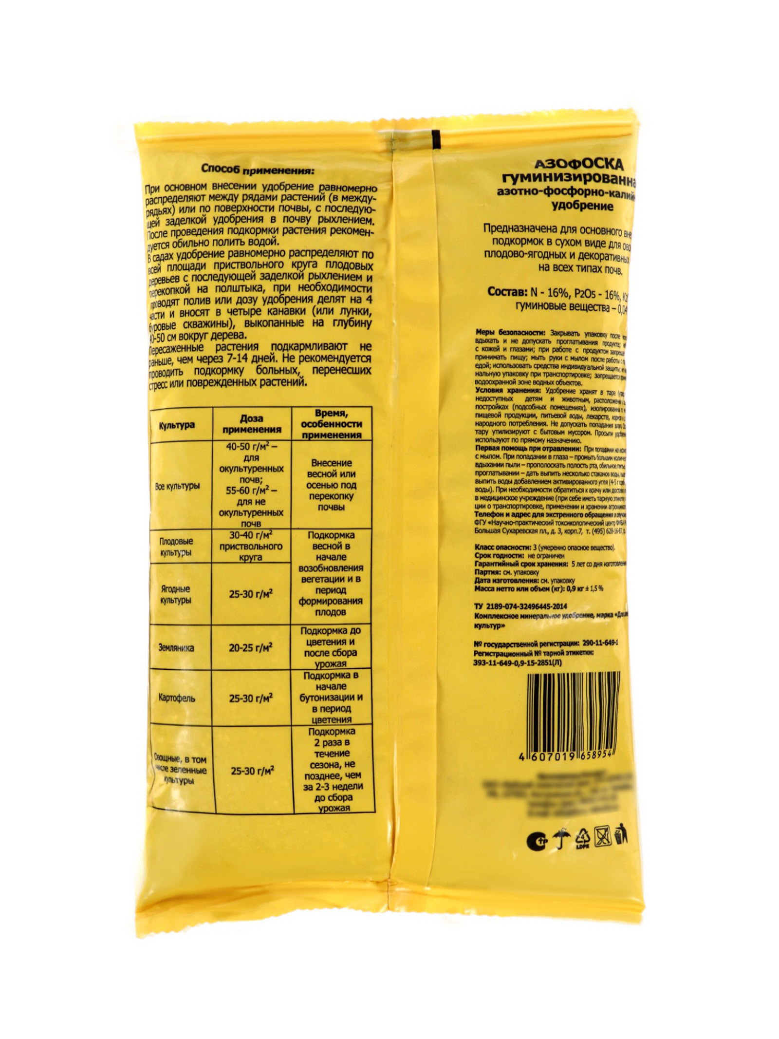 Размер упаковки: 15 x 3.5 x 24 см. Комплексные удобрения: Нет Эффект: Увеличение урожая Периоды применения: Круглогодичные Вид: Удобрения Класс опасности: 3 класс (умеренно опасные) Группы элементов: Макроудобрения Вид средства: Удобрение tnved: 3105209000 Сатурн: Сатурн Температурное ограничение: Нет Препаративная форма: Сухая смесь Происхождение: Органические (природное) Область применения: Универсальные Сложное азотно-фосфорно-калийное удобрение - NPK. Применяется для основного, предпосевного и местного внесения в рядки при посеве, а также для подкормки растений на всех типах почв и под все сельскохозяйственные культуры. Не слеживается, обладает 100% рассыпчатостью, не гигроскопична. Нитроаммофоску вносят в качестве основного и припосевного удобрения на всех типах почв под все сельскохозяйственные культуры. Очень высокая агрохимическая и экономическая эффективность прослеживается при условиях прикорневой подкормки растений локально- ленточным способом на глубину 8-10 см Наиболее эффективны эти удобрения на черноземах и почвах тяжелого гранулометрического состава. Благодаря разнообразию выпускаемых марок нитроаммофоски удобрение может быть подобрано индивидуально, с учетом особенностей типа почвы и выращиваемой культуры. | ||