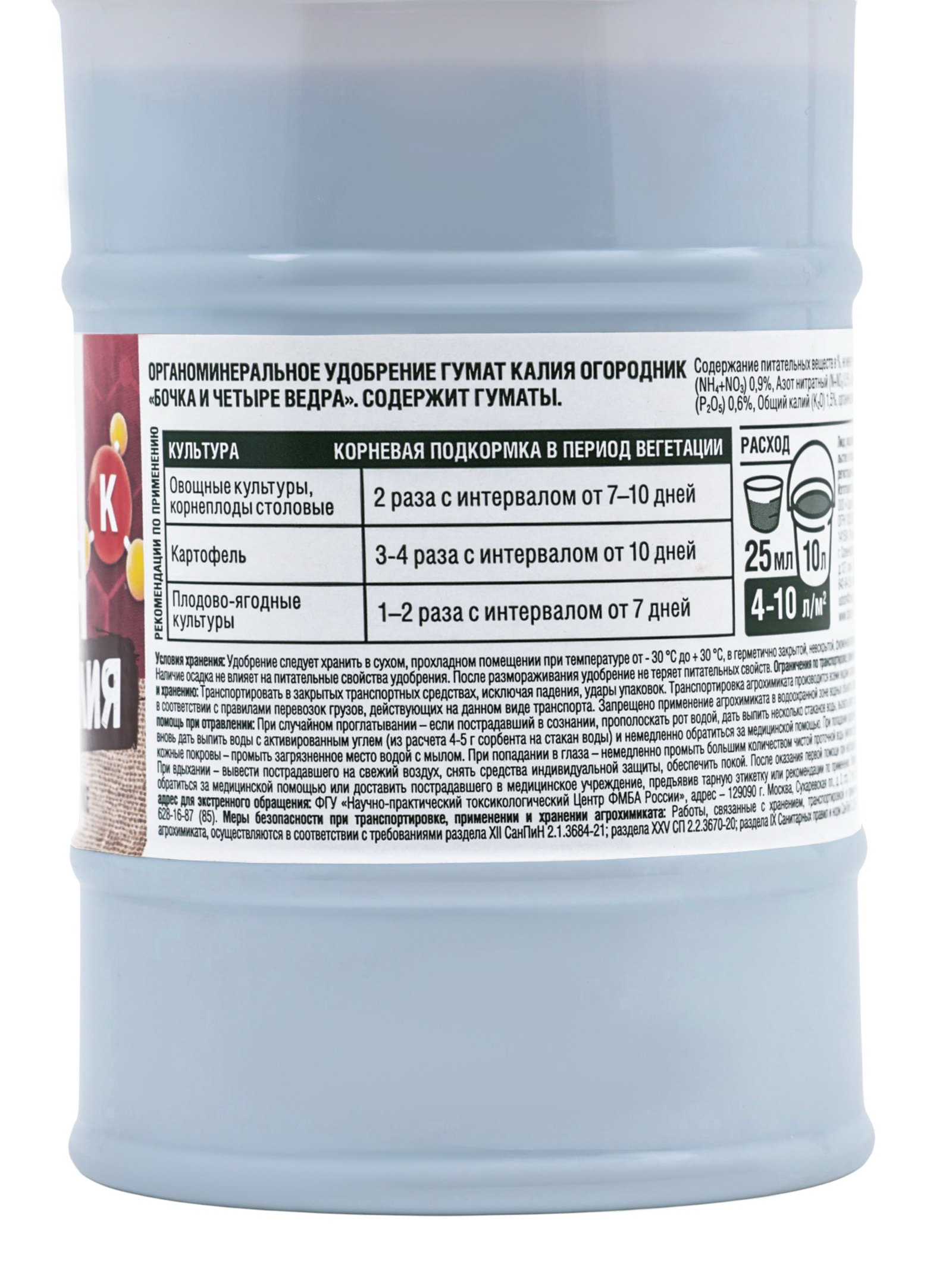 Удобрение органическое жидкое Бочка и четыре ведра, гумат калия в бутылках, 600 мл, Огородник, Россия