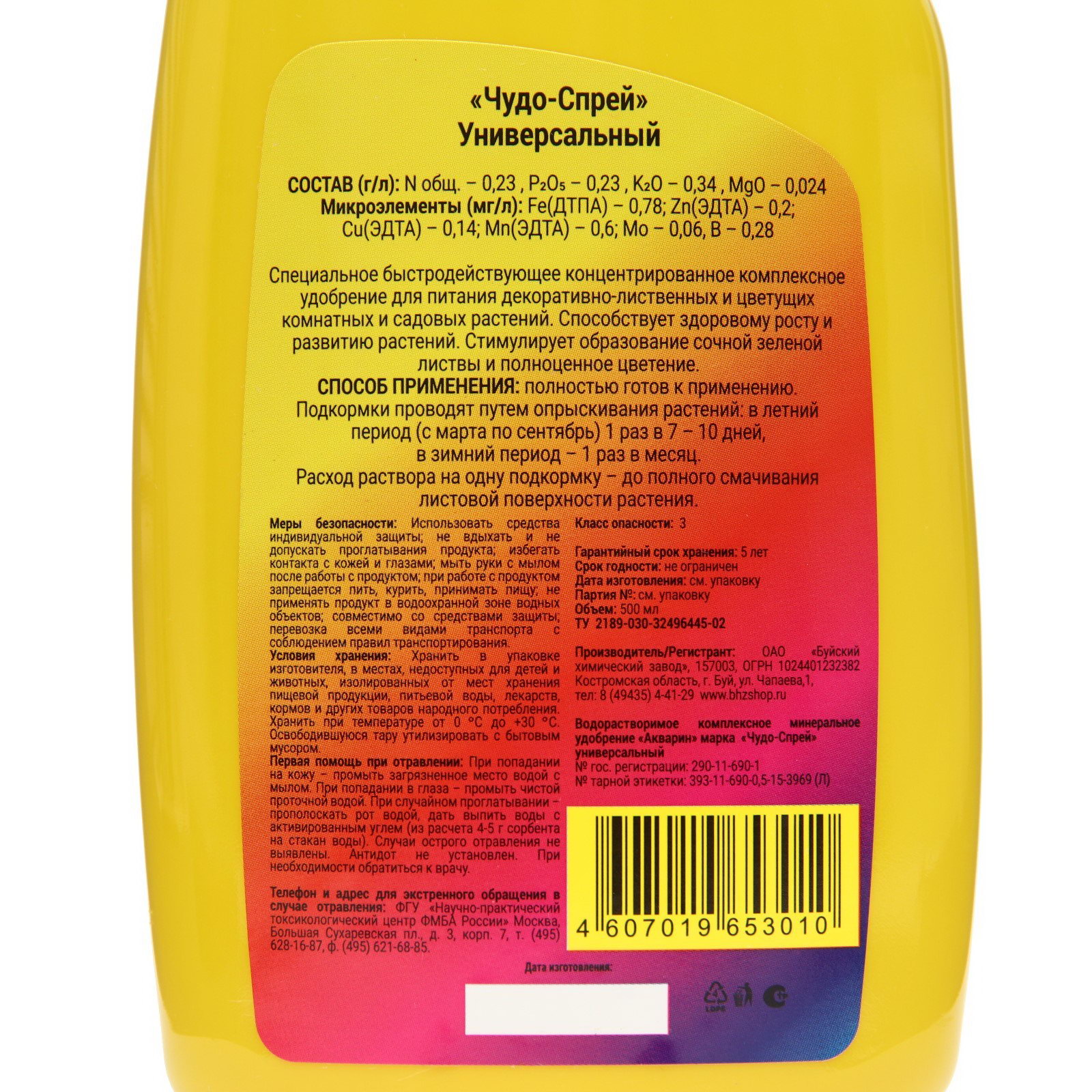 Удобрение комплексное жидкое, "Чудо спрей", универсальное, 0.5 л, Буйские удобрения, Россия