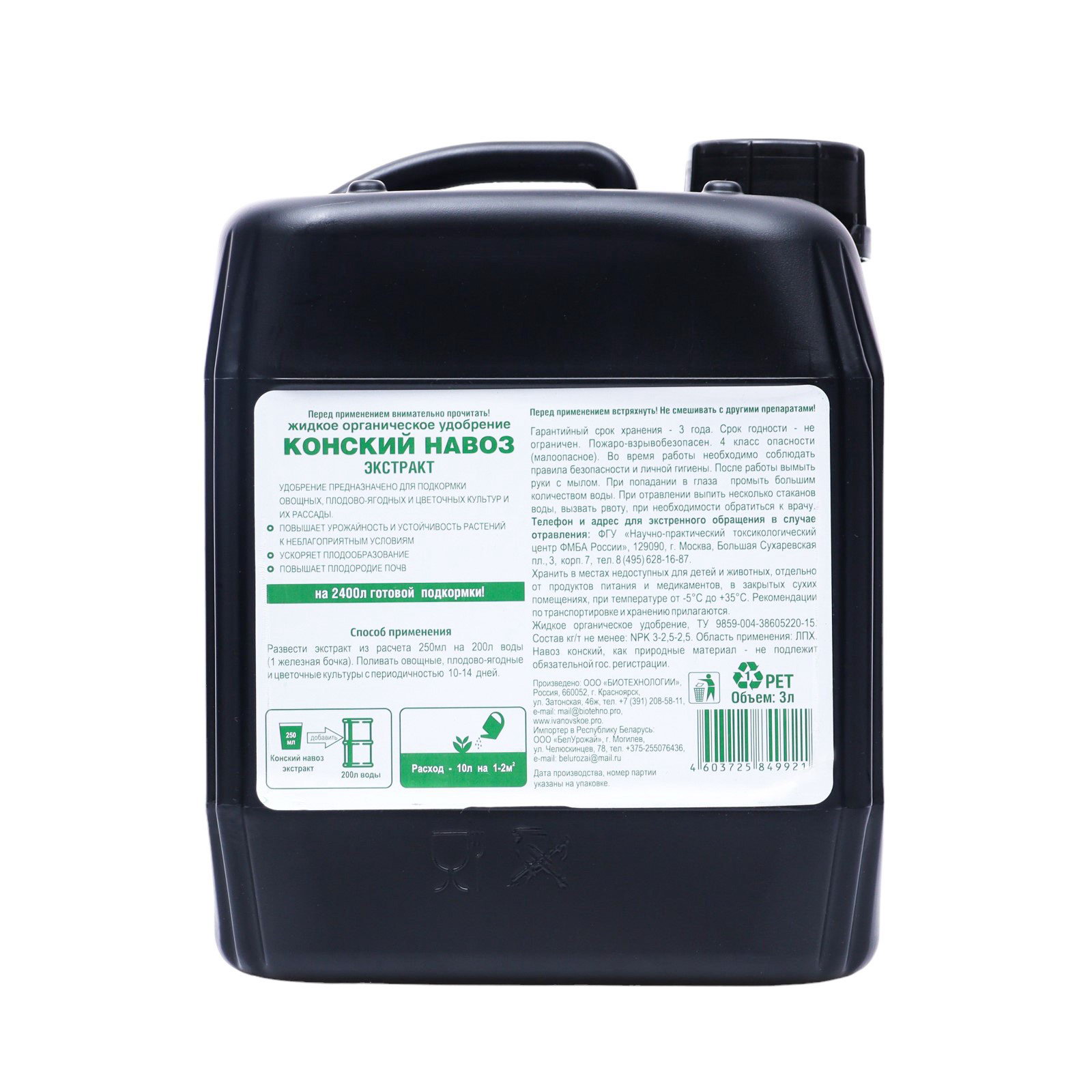 Органическое удобрение Конский навоз, экстракт, канистра, Ивановское, 3 л, ФХ Ивановское, Россия