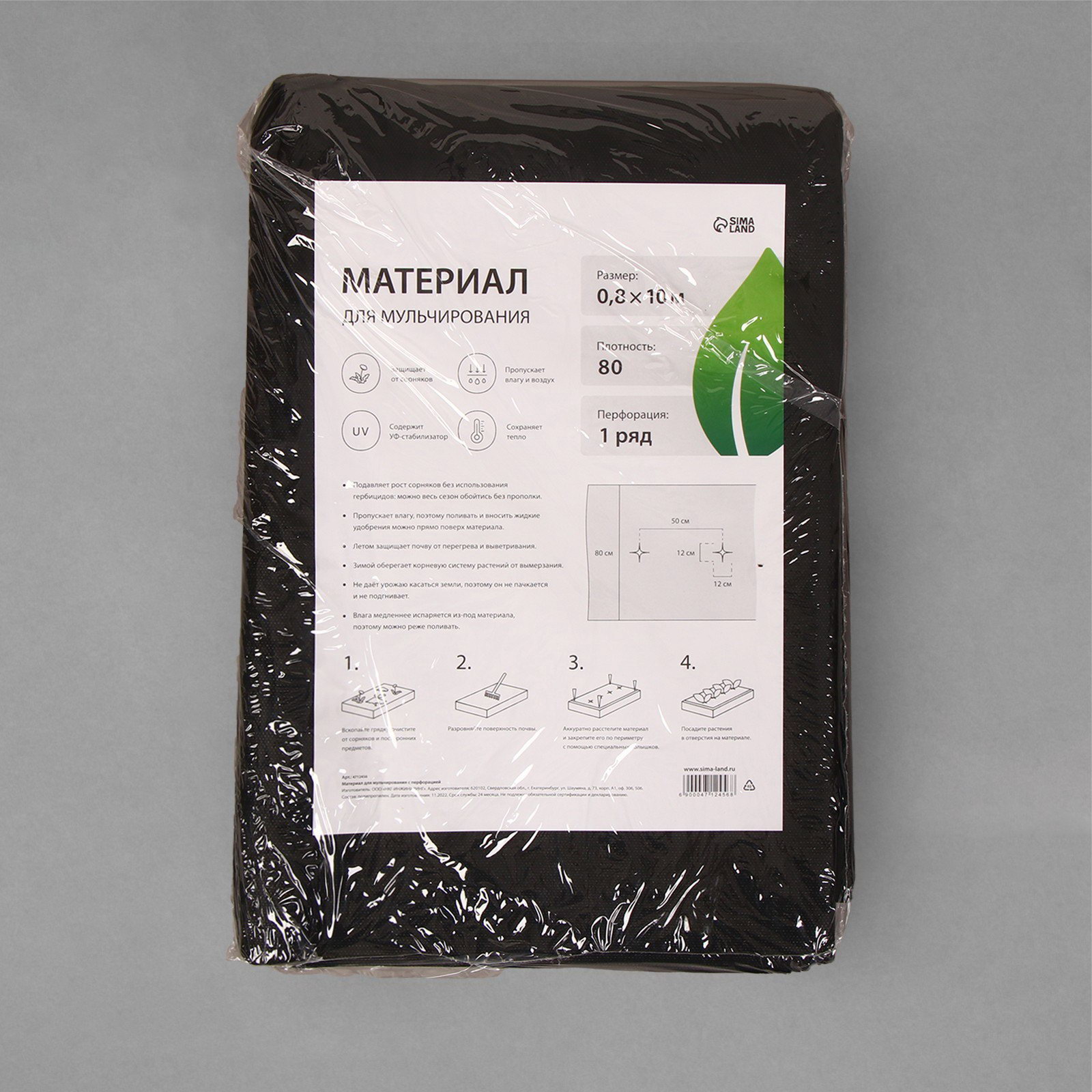 Материал мульчирующий, с перфорацией, 10 x 0.8 м, плотность 80 г/?2, спанбонд с УФ-стабилизатором, чёрный, Эконом 30%, Greengo, Россия