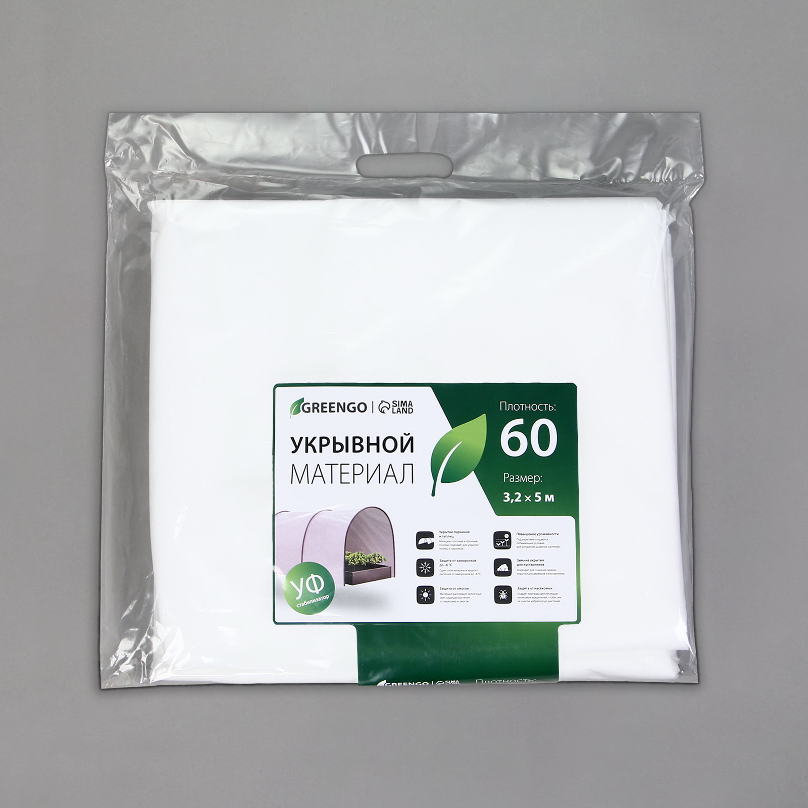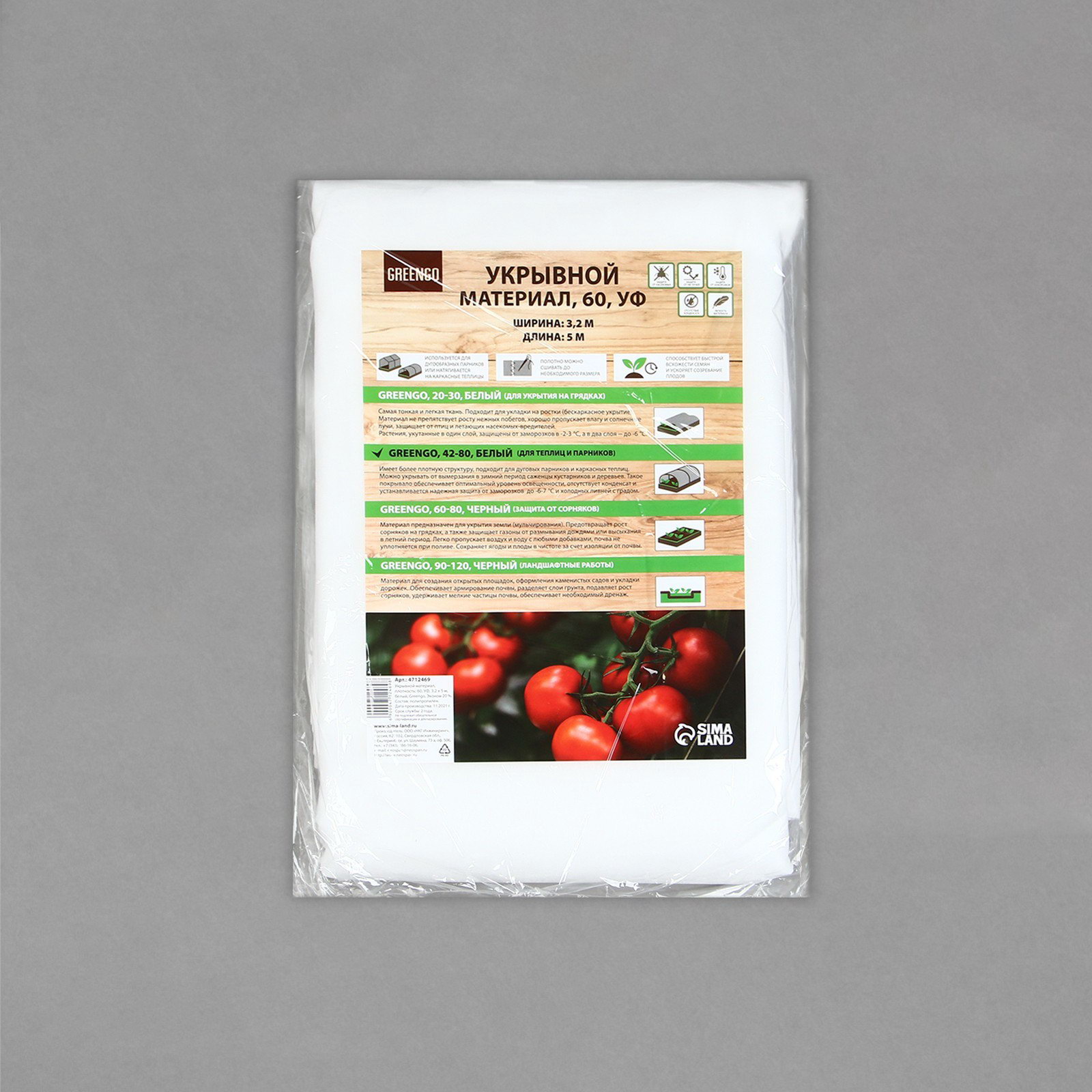 Материал укрывной, 5x3.2 м, плотность 60 г/?2, спанбонд с УФ-стабилизатором, белый, Эконом 30%, Greengo, Россия