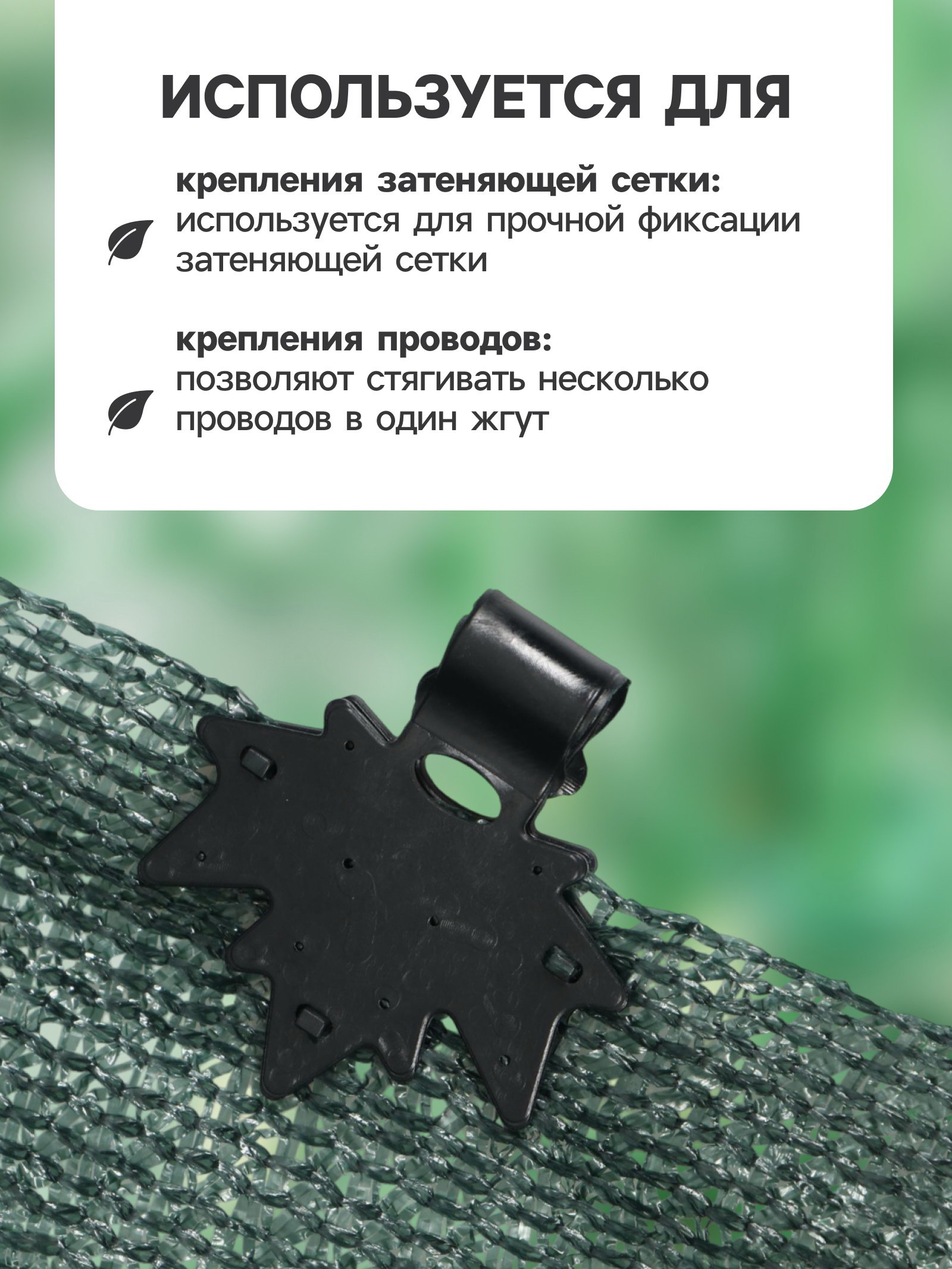 Клипса садовая "Кленовый лист", для крепления теневой сетки, пластиковая, чёрная, Россия