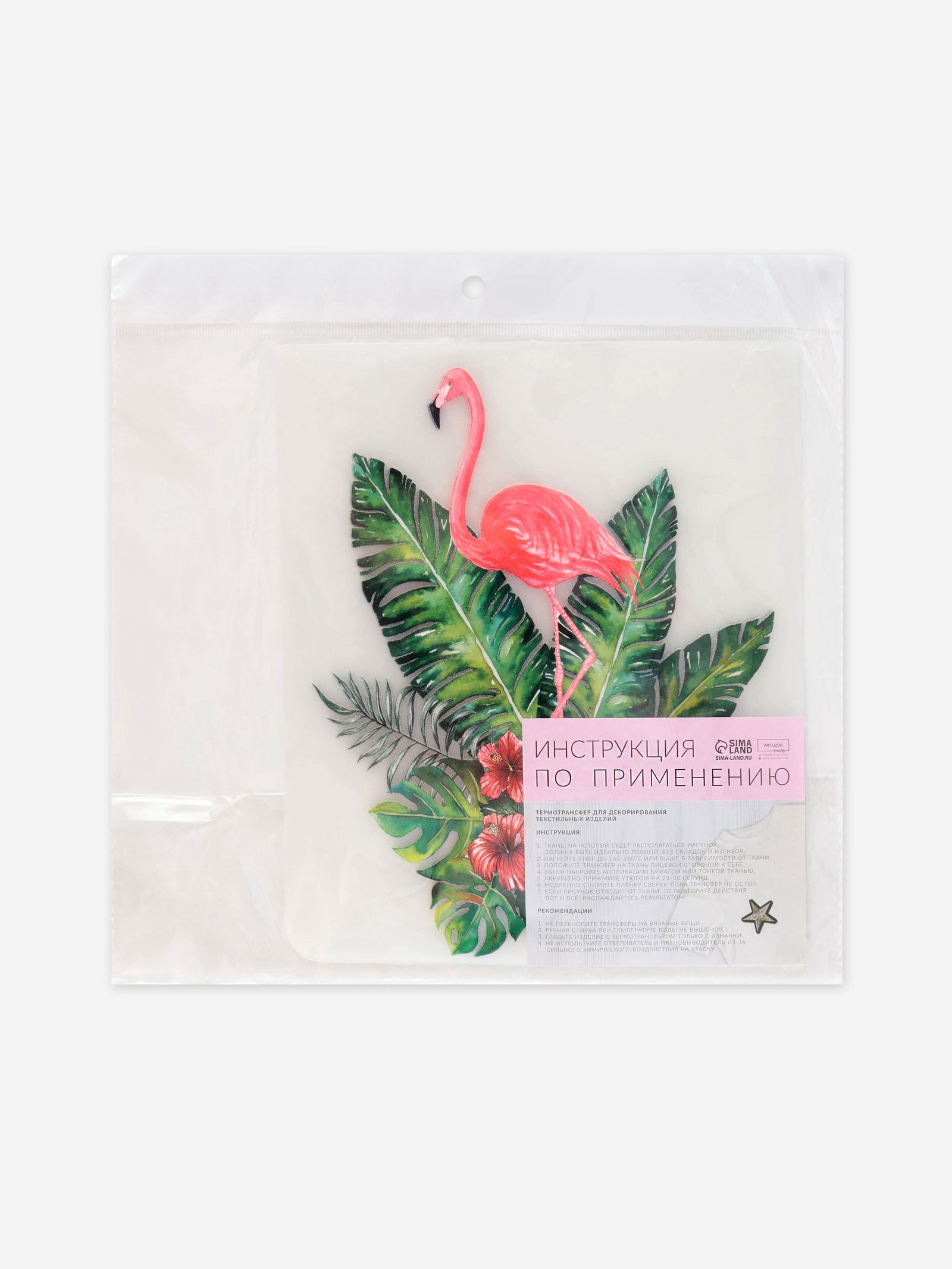 Термонаклейка "Фламинго в кустах", 19.5x15 см, 20.5x26x0.1 см., Арт Узор, Китай