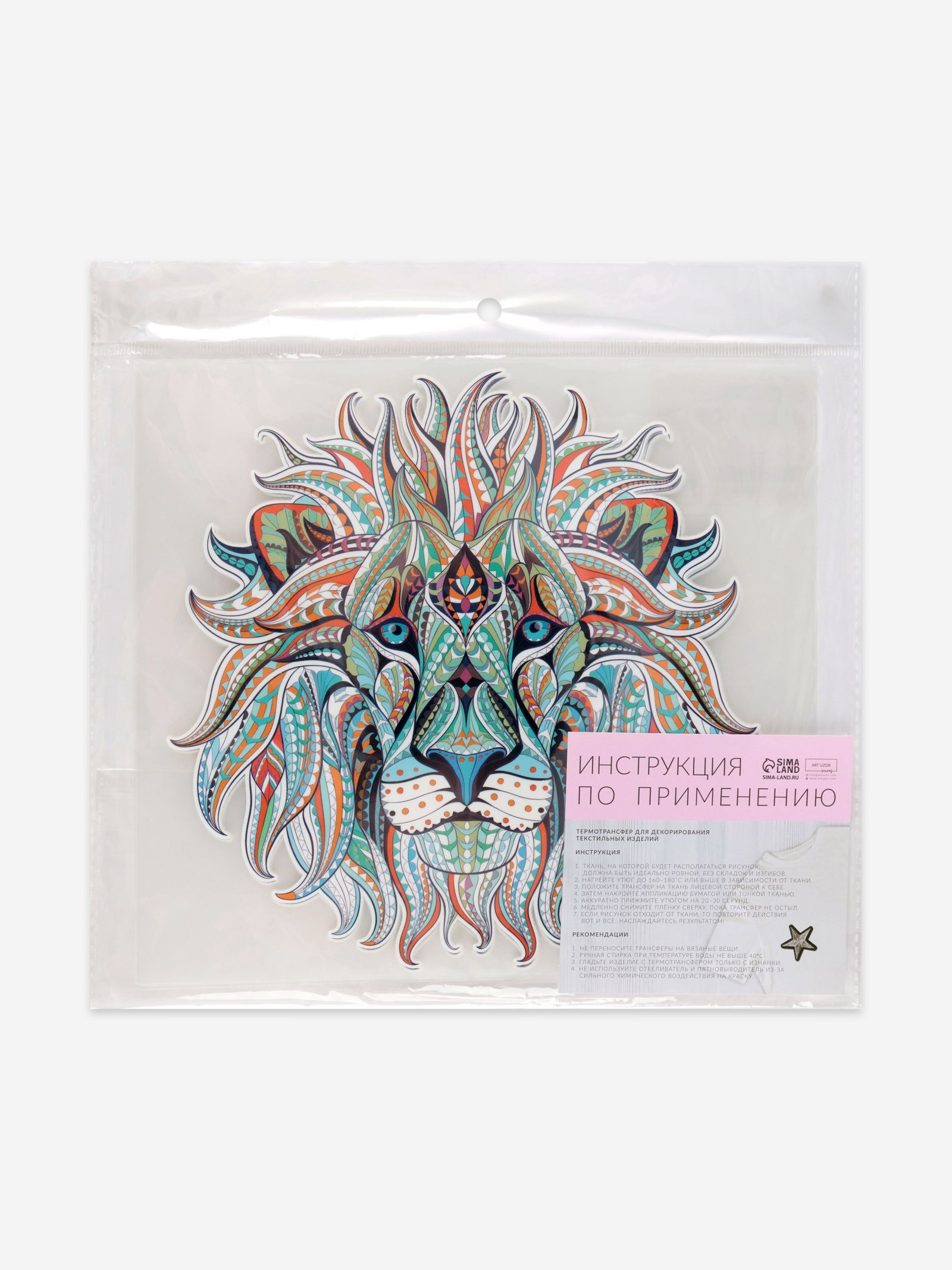 Термонаклейка "Лев", 18.5x18.5 см, 18.5x18.5x0.1 см., Арт Узор, Китай