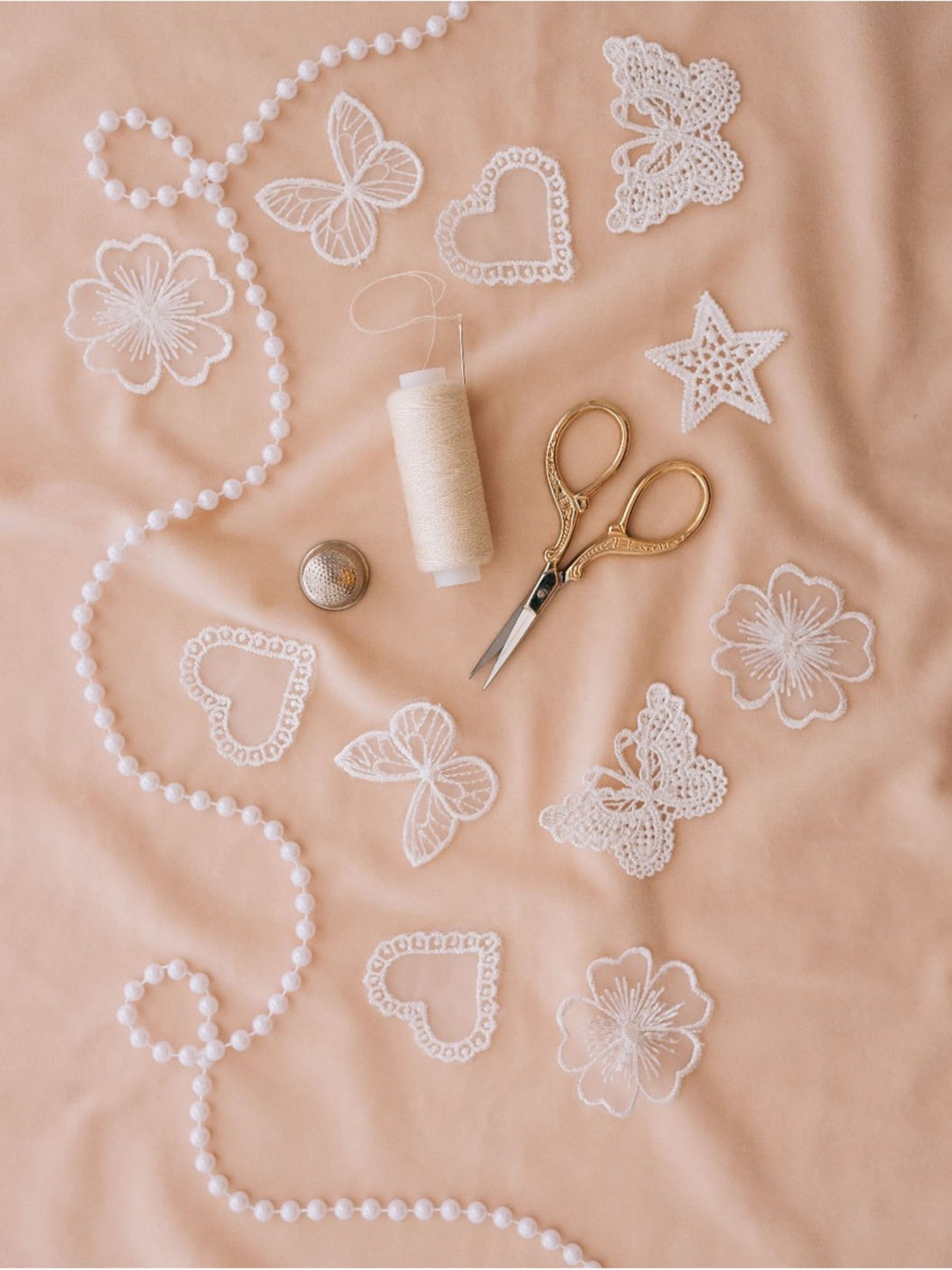Аппликация для одежды "Бабочки", кружевная, 5.5x4 см, 10 шт., белая, 7x14x1 см., Арт Узор, Китай