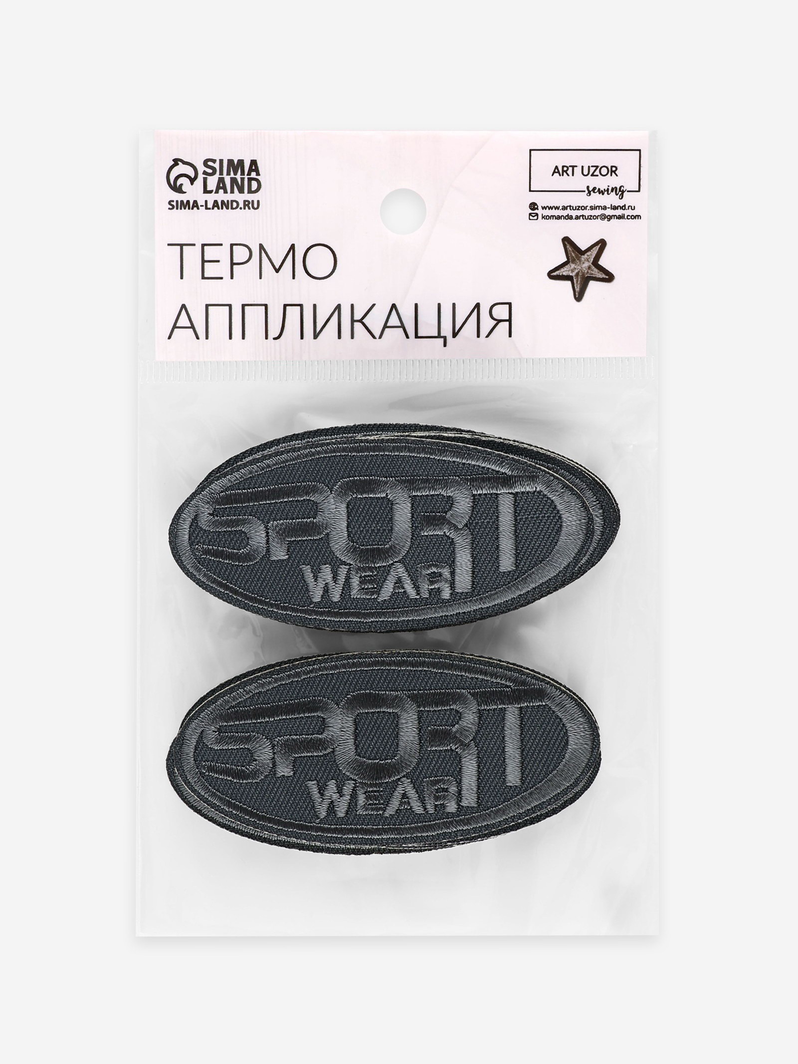 Термоаппликация Sport wear, 7.2x3.2 см, серая, 3.2x7.2x0.1 см., Арт Узор, Китай