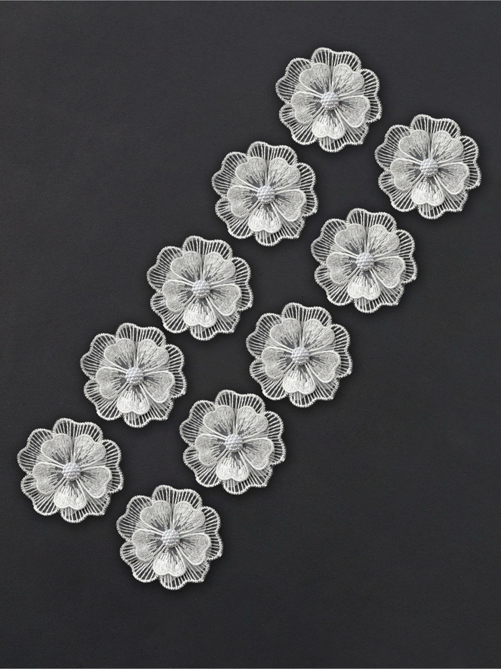 Аппликация для одежды "Цветок" текстильная, d=6 см, 10 шт., белая, 10x14x1 см., Арт Узор, Китай