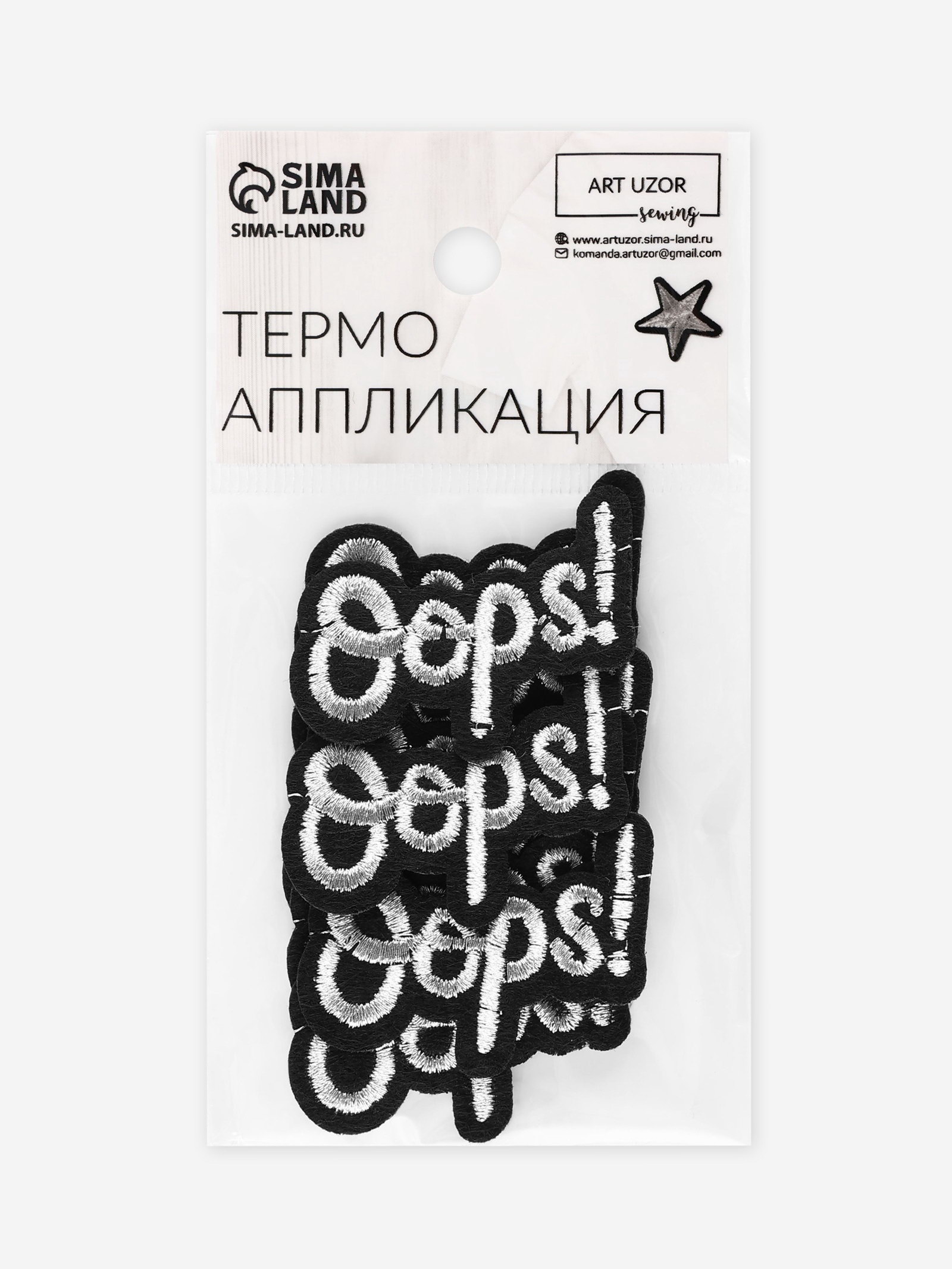 Термоаппликация Oops, 4x2.5 см, цвет серебряный, 2x4x0.2 см., Арт Узор, Китай