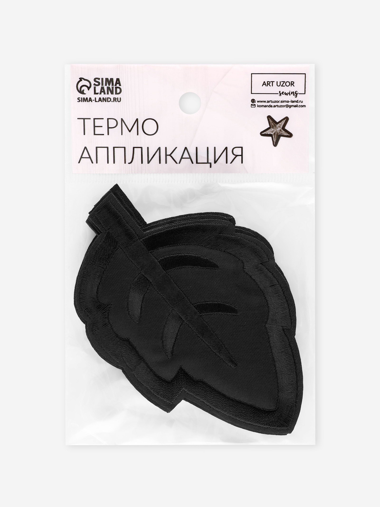 Термоаппликация "Лист", 10.5x6.5 см, чёрная, 6x10x0.1 см., Арт Узор, Китай