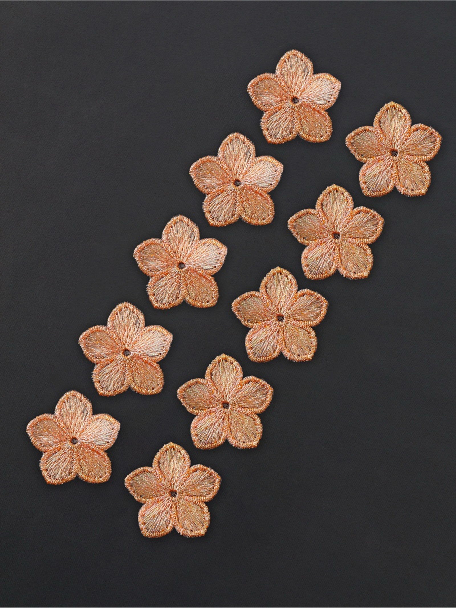 Аппликация для одежды "Цветок", текстильная, с голографической нитью, 3.5x3.5 см, 10 шт., оранжевая, Арт Узор, Китай