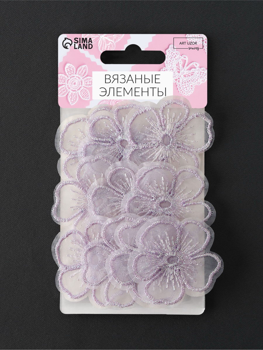 Аппликация для одежды "Цветок" текстильная, с голографической нитью, 4.2x4 см, 10 шт., сиреневая, Арт Узор, Китай