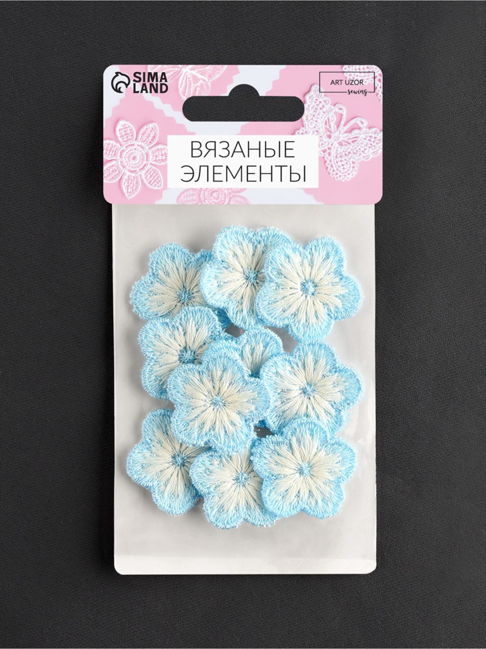 Аппликация для одежды "Цветок", текстильная, 2.8x2.8 см, 10 шт., белая, голубая, Арт Узор, Китай