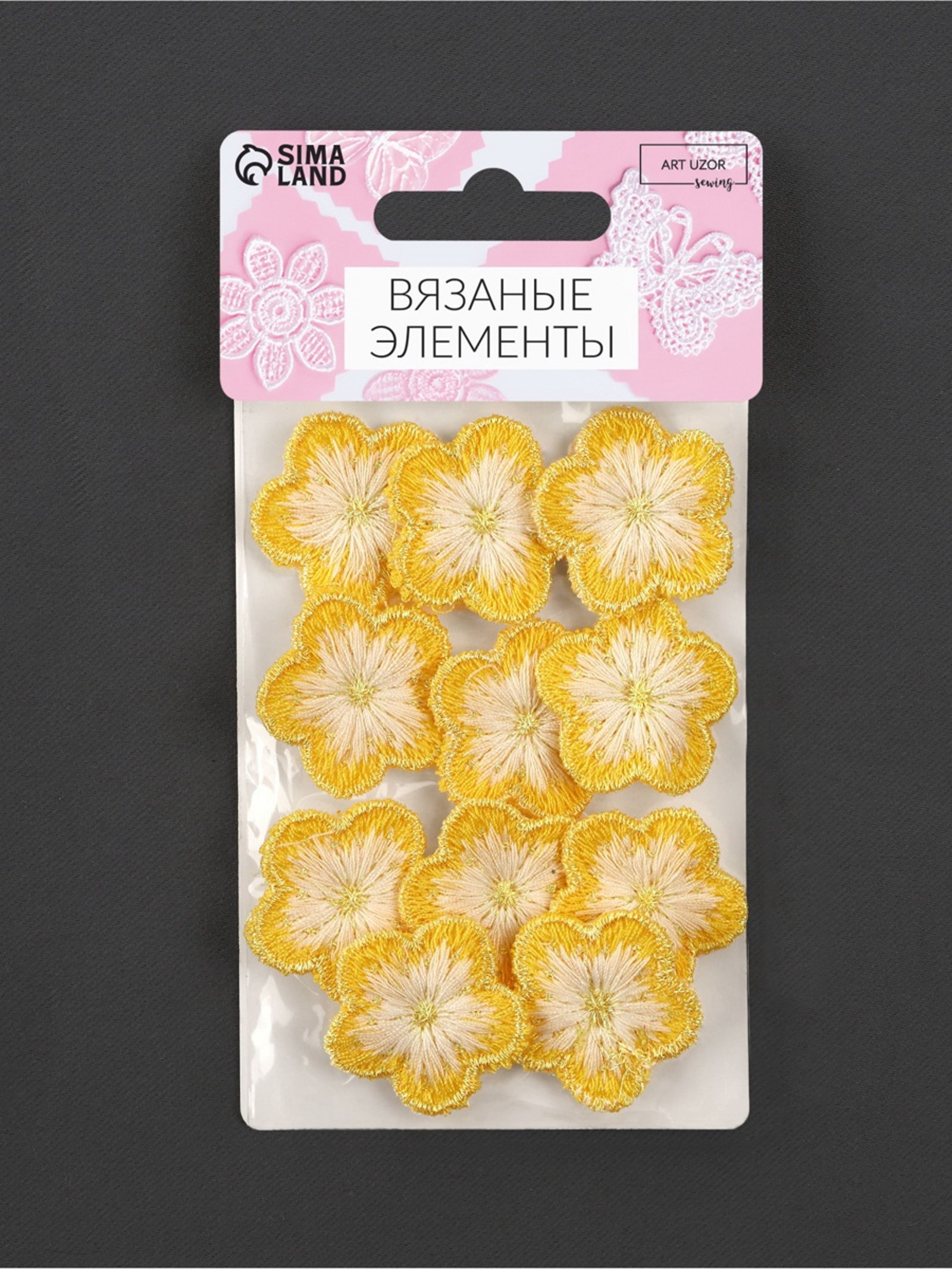 Вид: Вязаные аппликации, Пришивная Размер упаковки: 7 x 1 x 13.5 см. Ширина, мм: 28 Цвет: Жёлтый В наборе, шт.: 10 Длина, м: 0.02 Набор: Да Тематика: Цветочно-растительная Для кого: Для девочки Двусторонний: Нет Особенности: Без особенностей tnved: 5810929000 Длина, см: 2.8 Ширина, см: 2.8 Яркие текстильные цветы добавят солнечного настроения детским вещам. В наборе 10 бело-желтых аппликаций размером 2.8x2.8 см, которые превратят обычную одежду в стильную и оригинальную. Почему стоит выбрать именно эти аппликации: