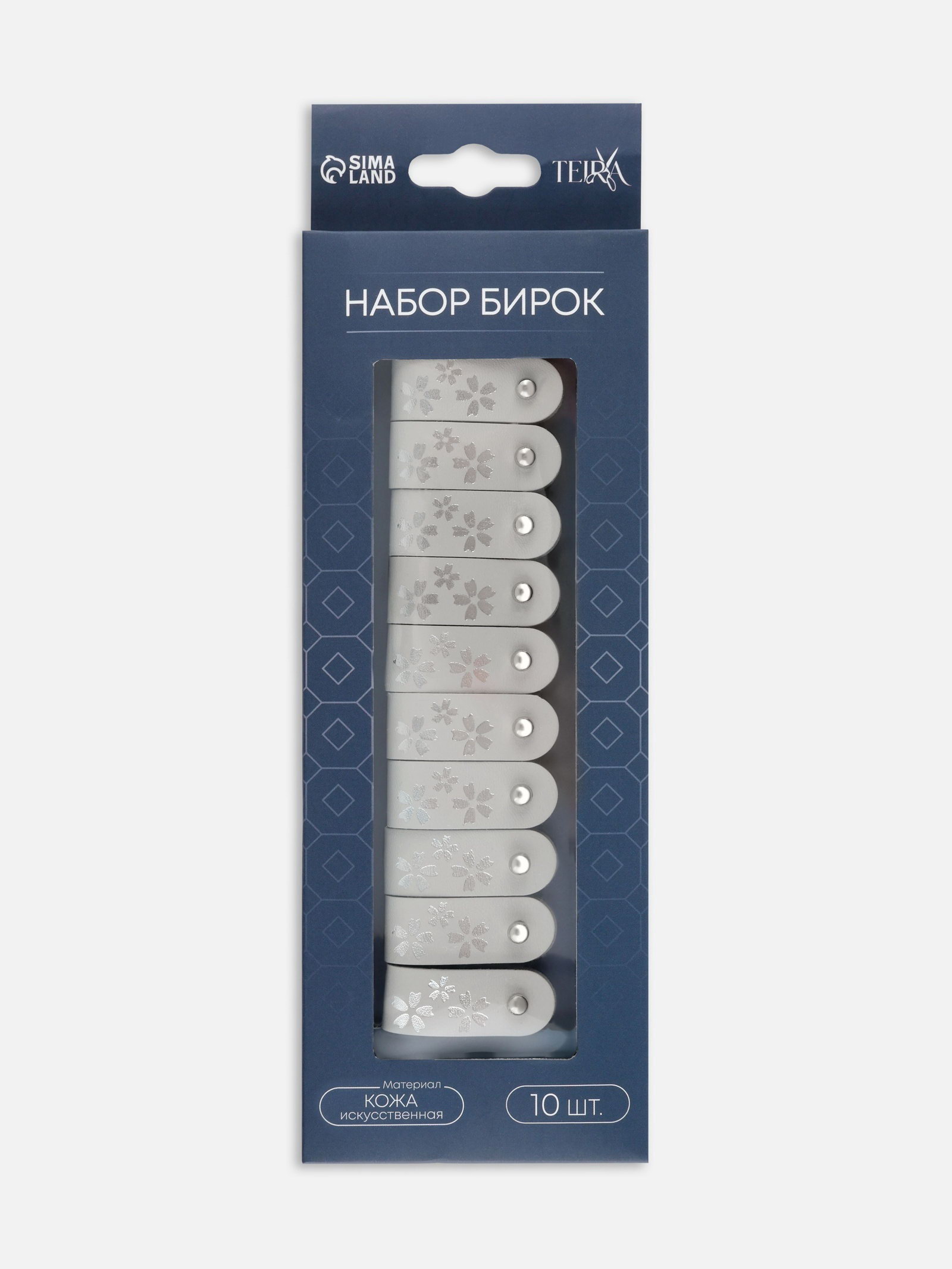 Размер упаковки: 8 x 1 x 24.5 см. В наборе, шт.: 10 Цвет: Серый Набор: Да Набор: Да tnved: 3926909700 Элегантное решение для маркировки изделий бирки с кнопкой из серой искусственной кожи добавят стильный акцент рукодельным работам и магазинному ассортименту. Тиснение создаёт эффект дорогой отделки, а практичная конструкция упрощает крепление.