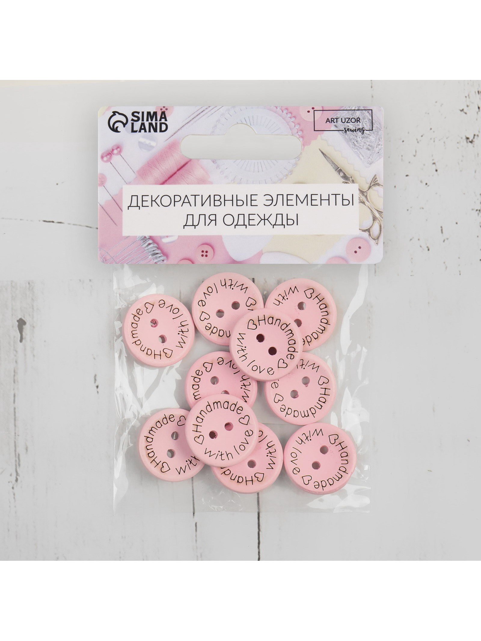 Набор нашивок из дерева Hand made with love, 2x2 см, 10 шт., розовый, 7x10x1 см., Арт Узор, Китай