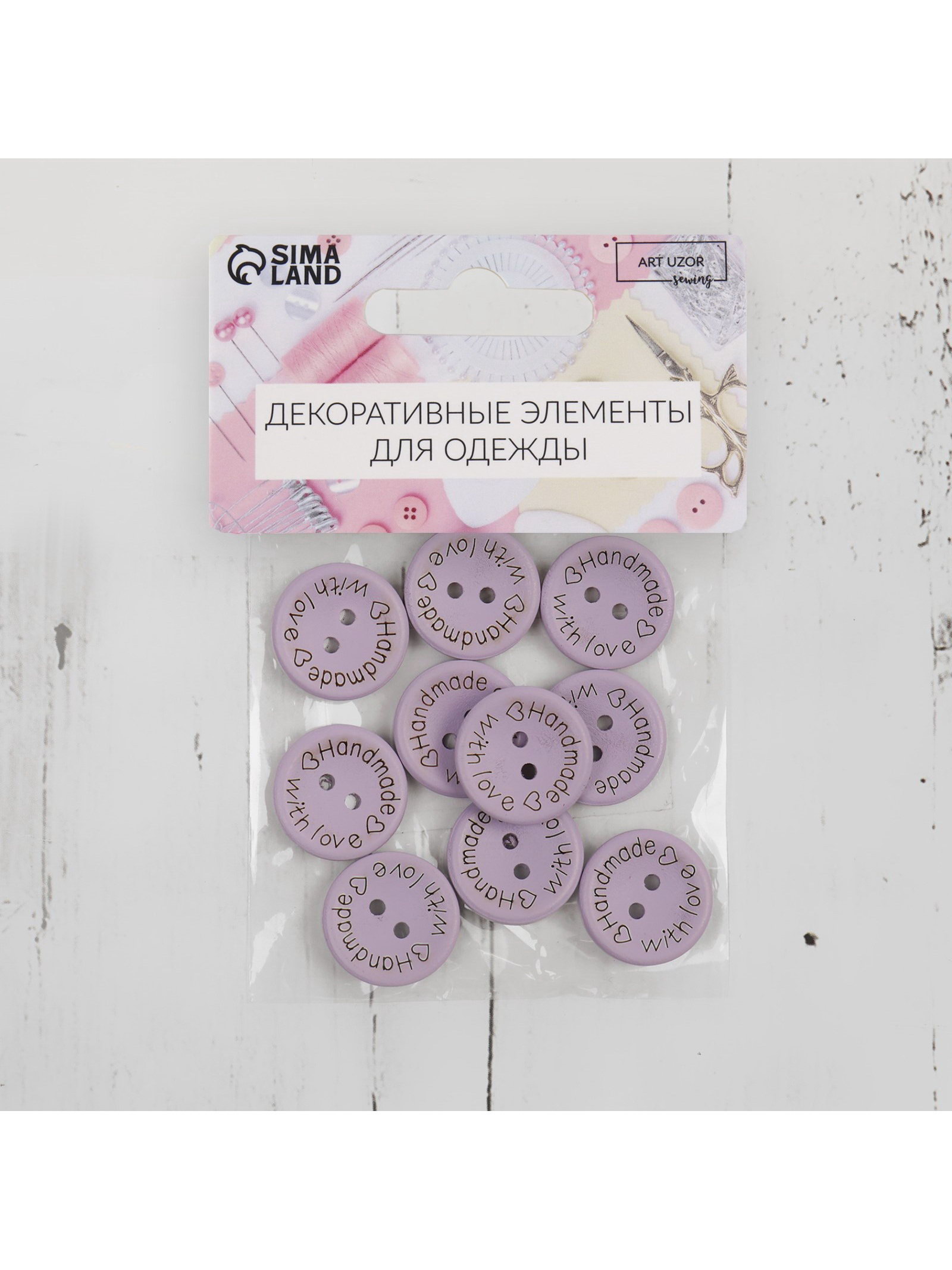 Набор нашивок из дерева Hand made with love, 2x2 см, 10 шт., сиреневый, 7x10x1 см., Арт Узор, Китай