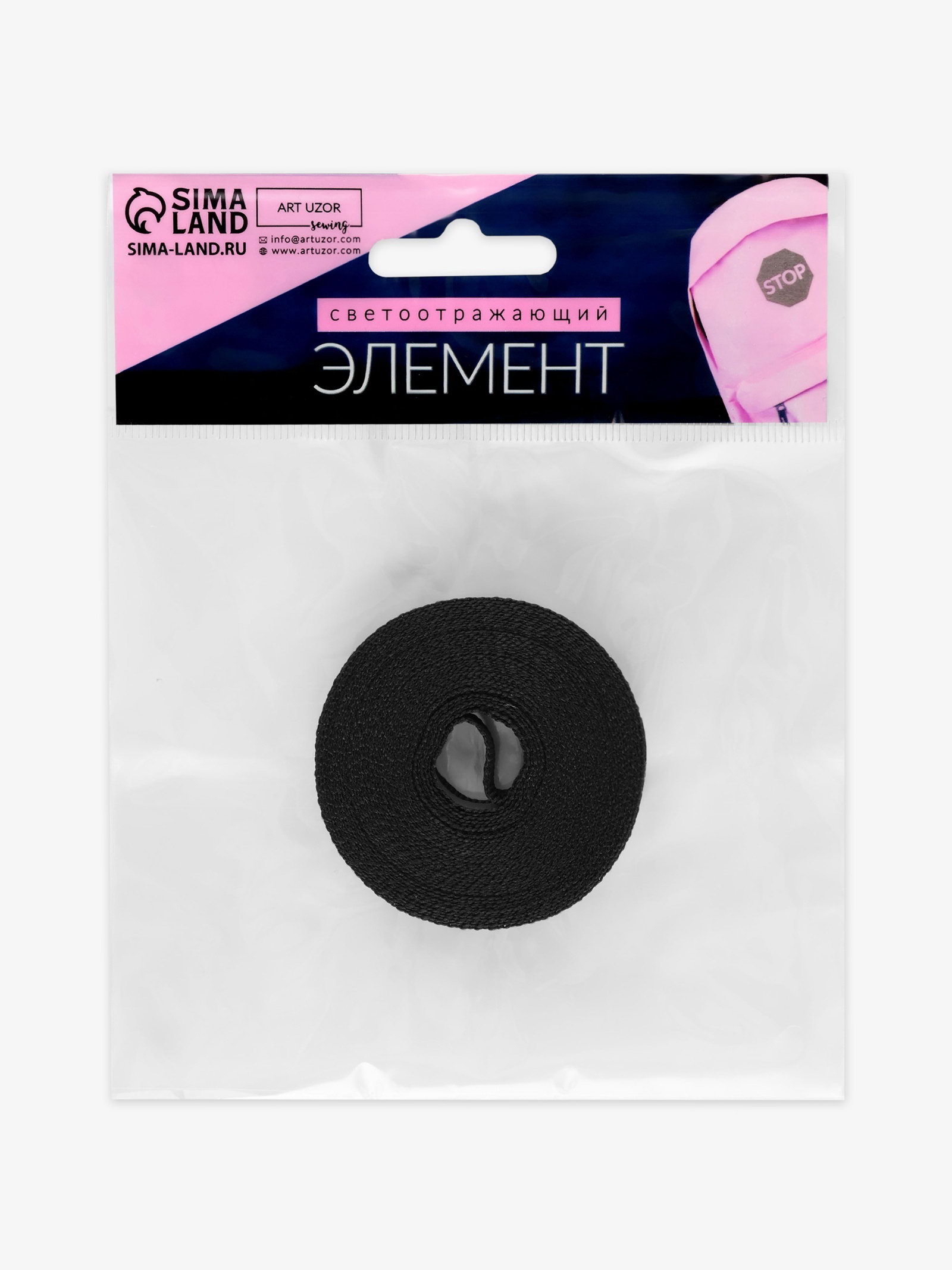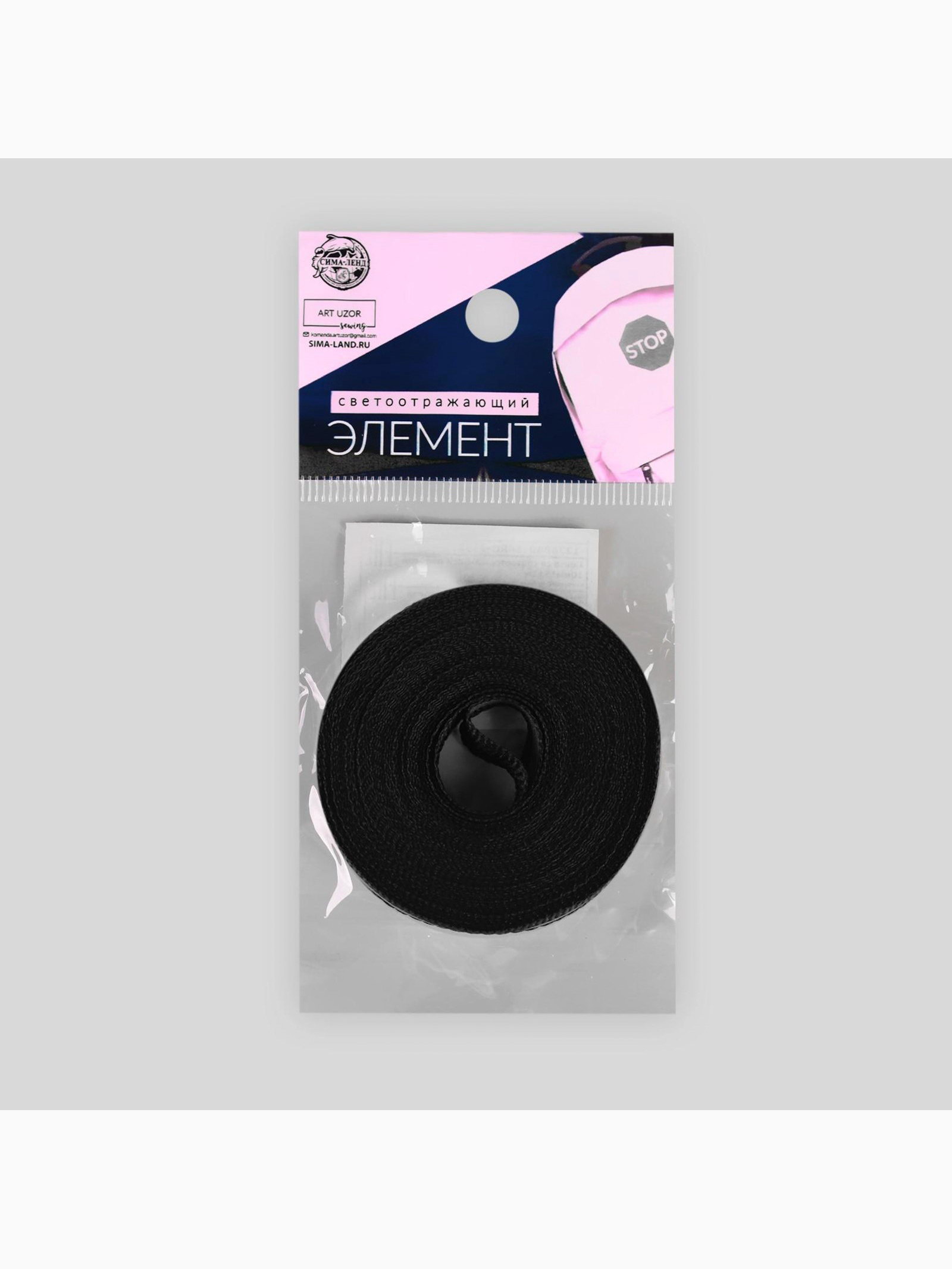 Светоотражающая лента-стропа, 10 мм, 5+-1 м, чёрная, 6x6x1 см., Арт Узор, Китай