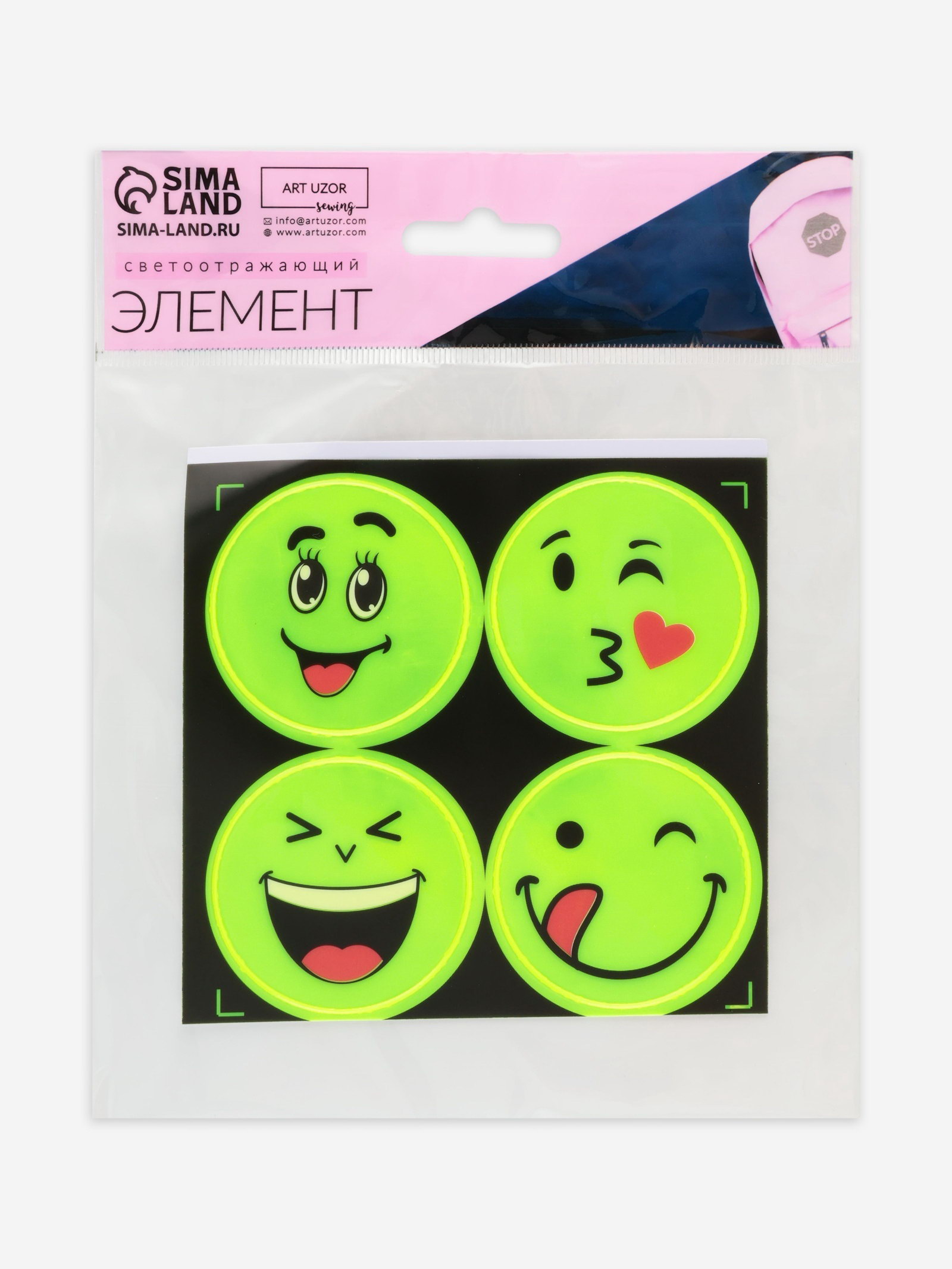 Светоотражающие наклейки "Смайлы", d=5 см, 4 шт. на листе, жёлтые, 10x11x0.2 см., Арт Узор, Китай