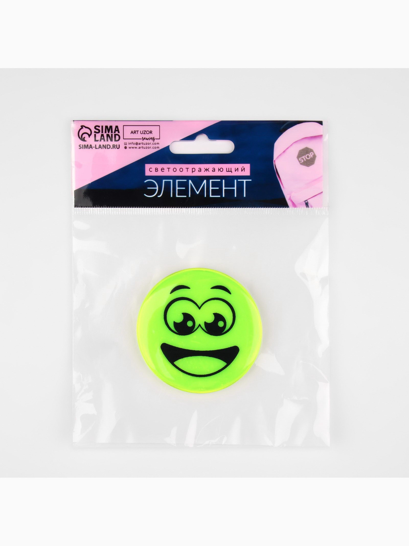 Светоотражающий значок "Удивлённый смайл", d = 5.8 см, цвет МИКС, 5.8x5.8x0.5 см., Арт Узор, Китай