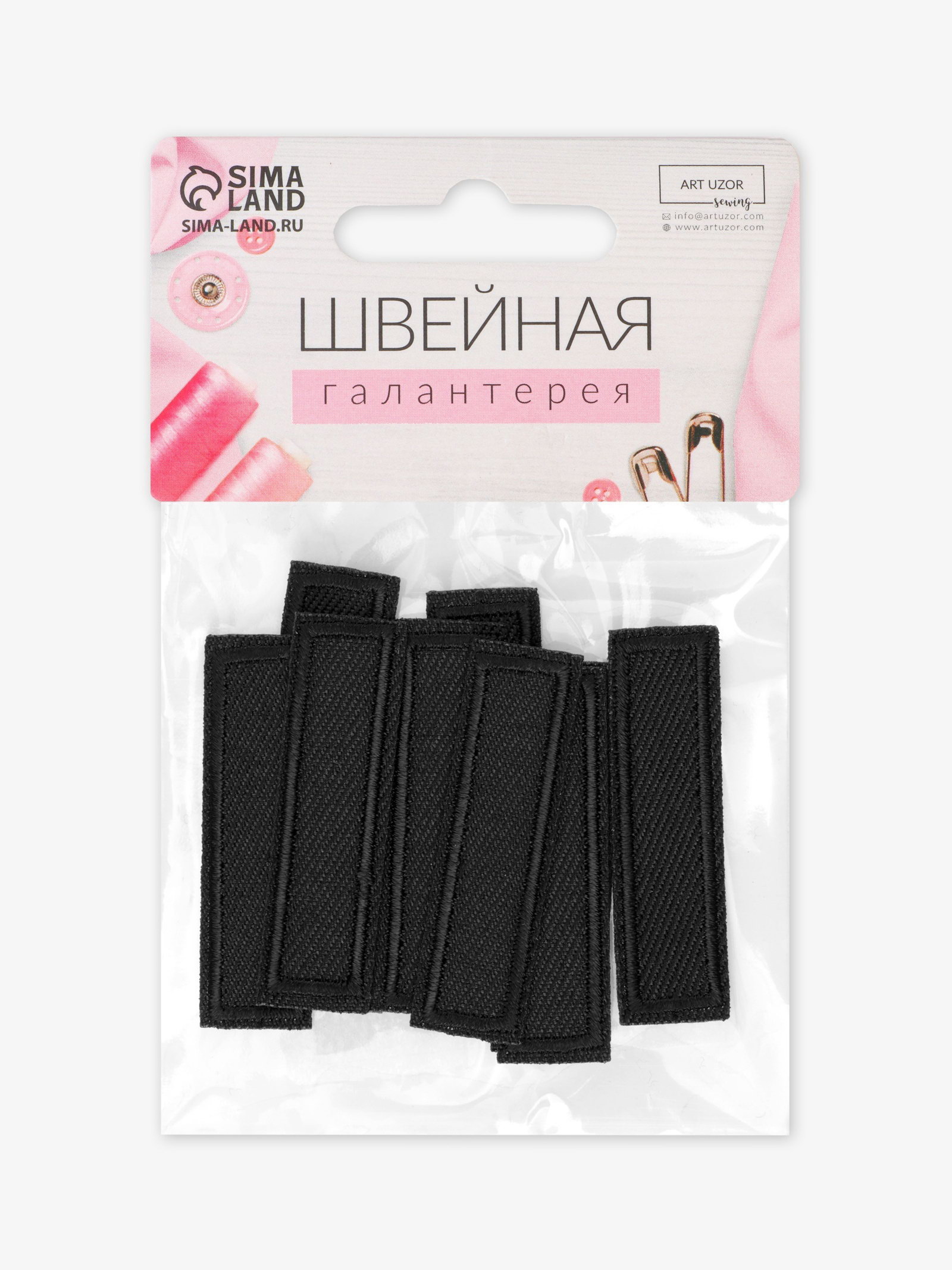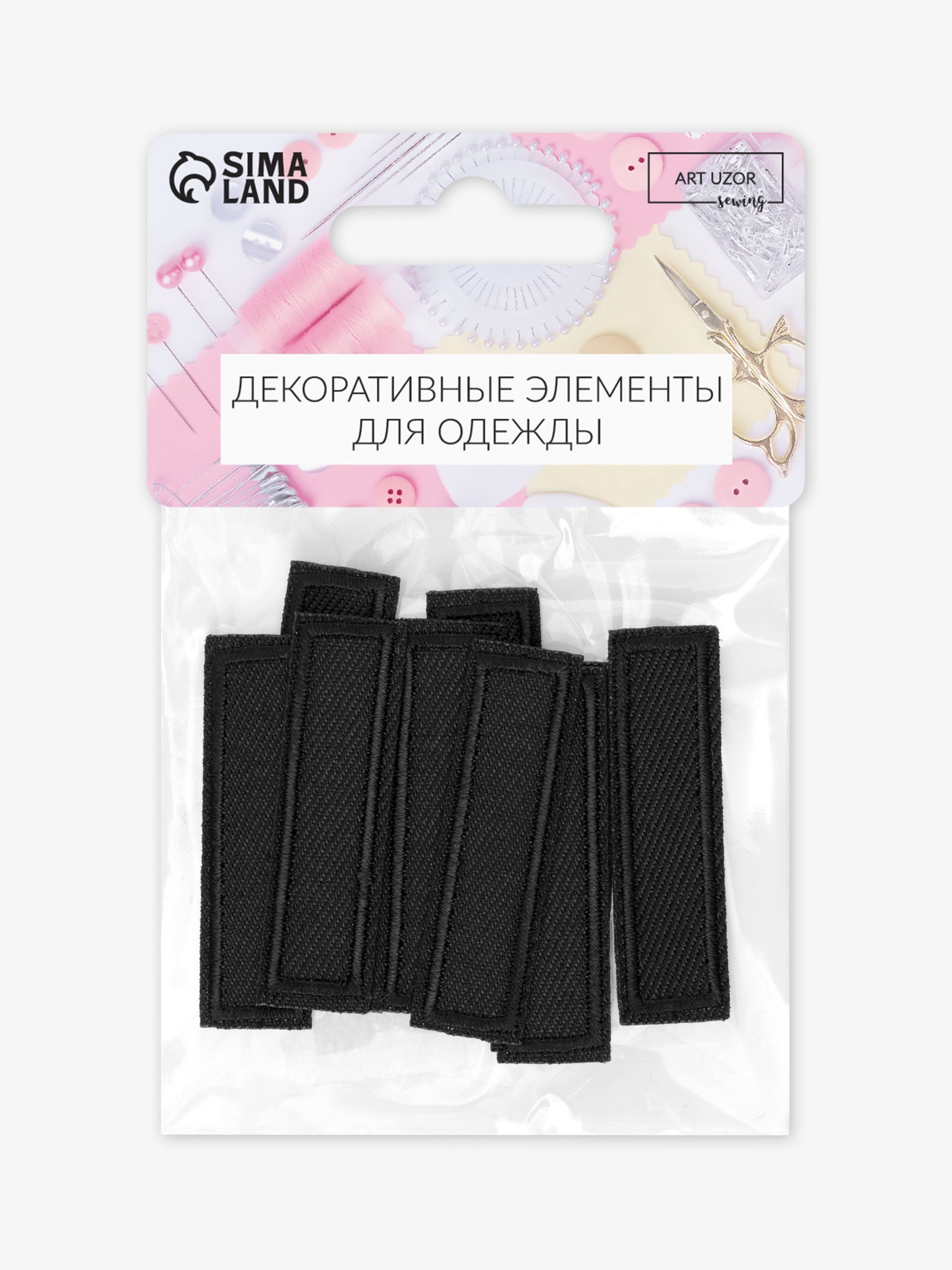 Заплатка для одежды, прямоугольная, 4.2x1 см, термоклеевая, чёрная, 1x4.2x0.1 см., Арт Узор, Китай