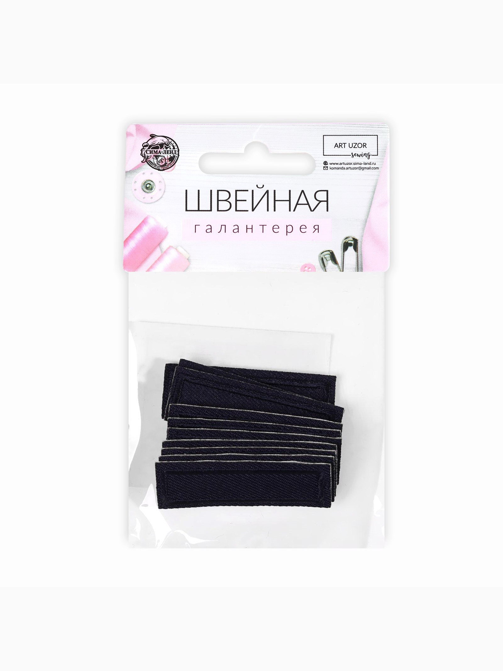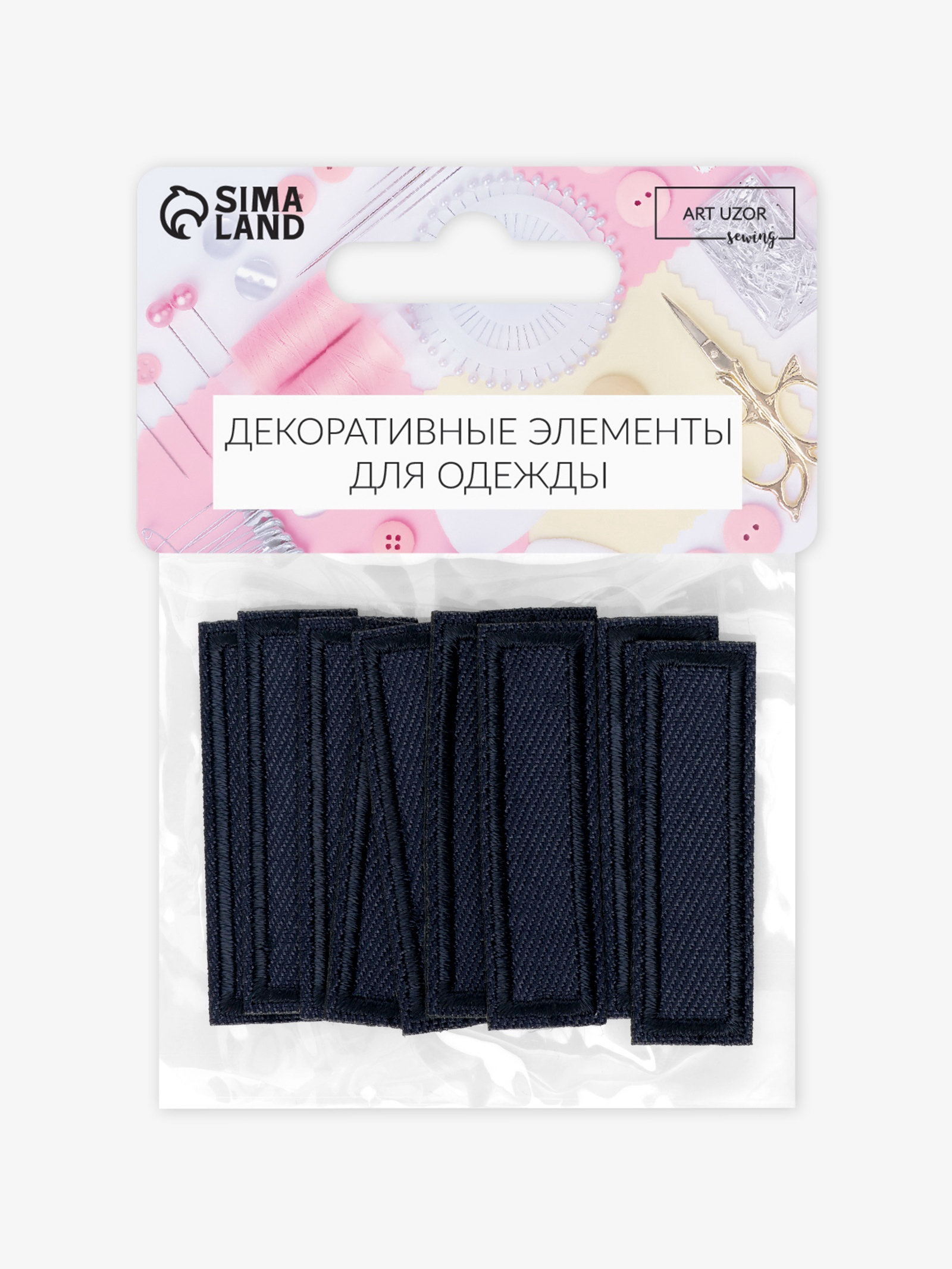 Заплатка для одежды, прямоугольная, 4.2x1 см, термоклеевая, тёмно-синяя, 1x4.2x0.1 см., Арт Узор, Китай
