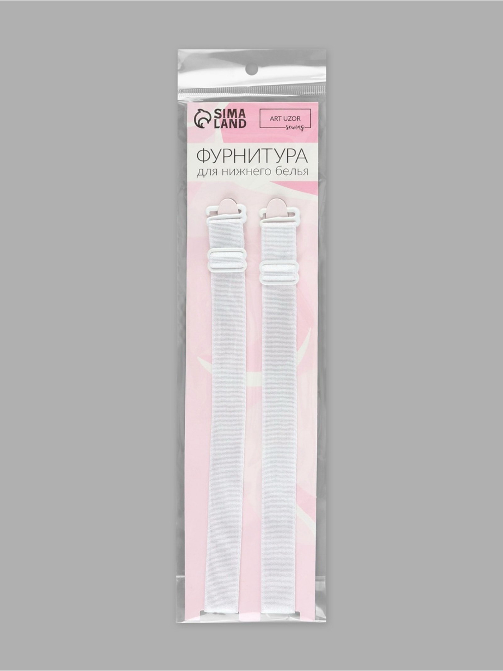 Лямки для бюстгальтера, текстильные, 1.5 см, 37 см, пара, белые, 1.5x37x0.2 см., Арт Узор, Китай